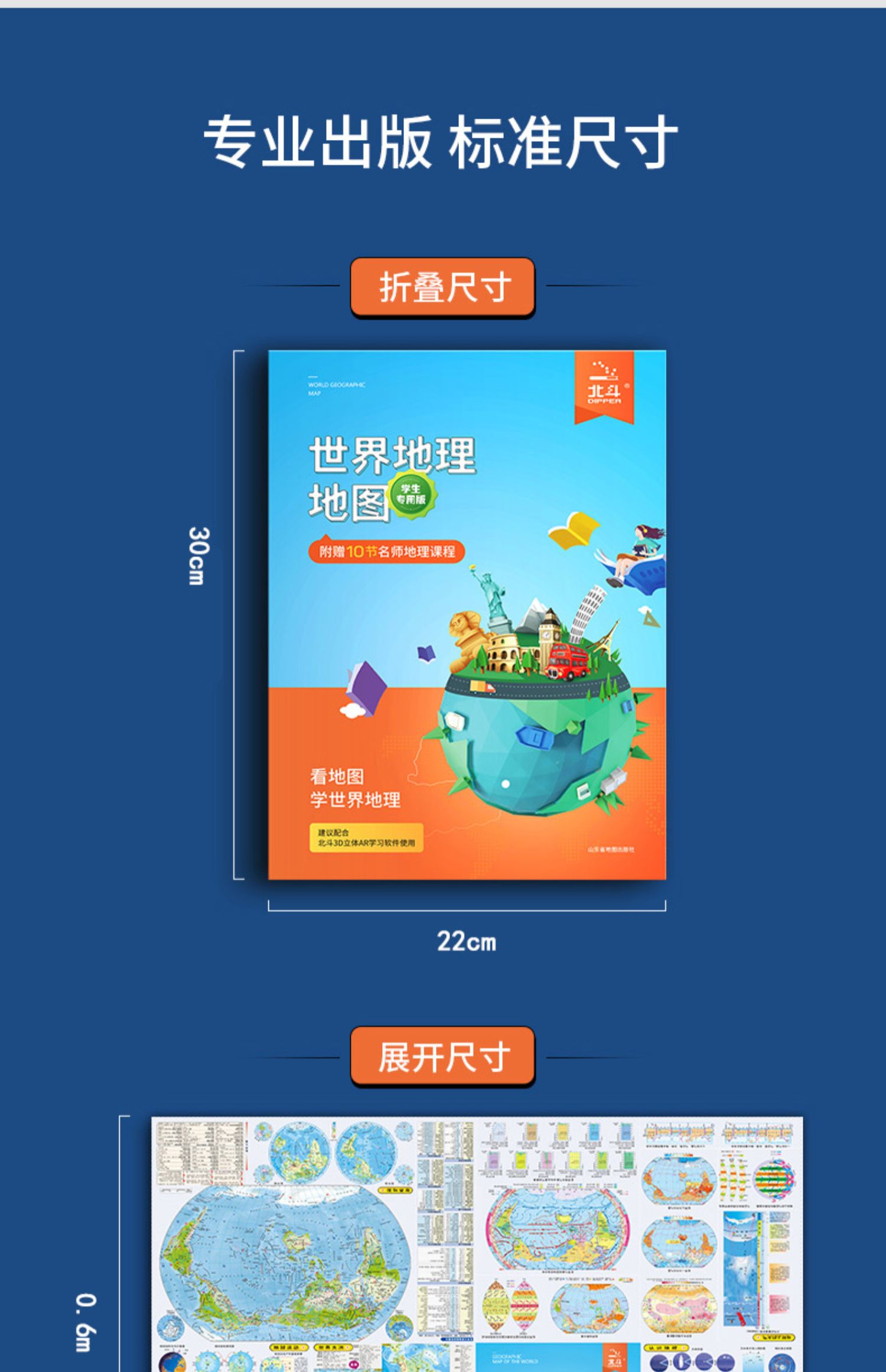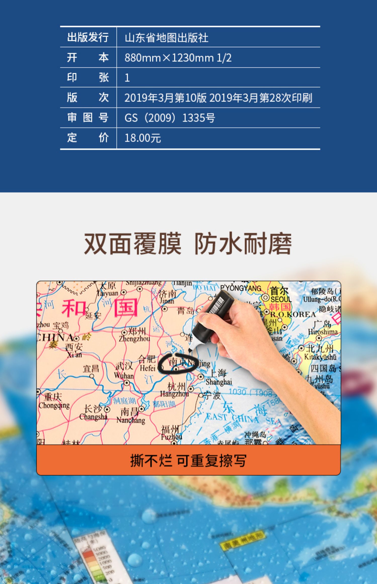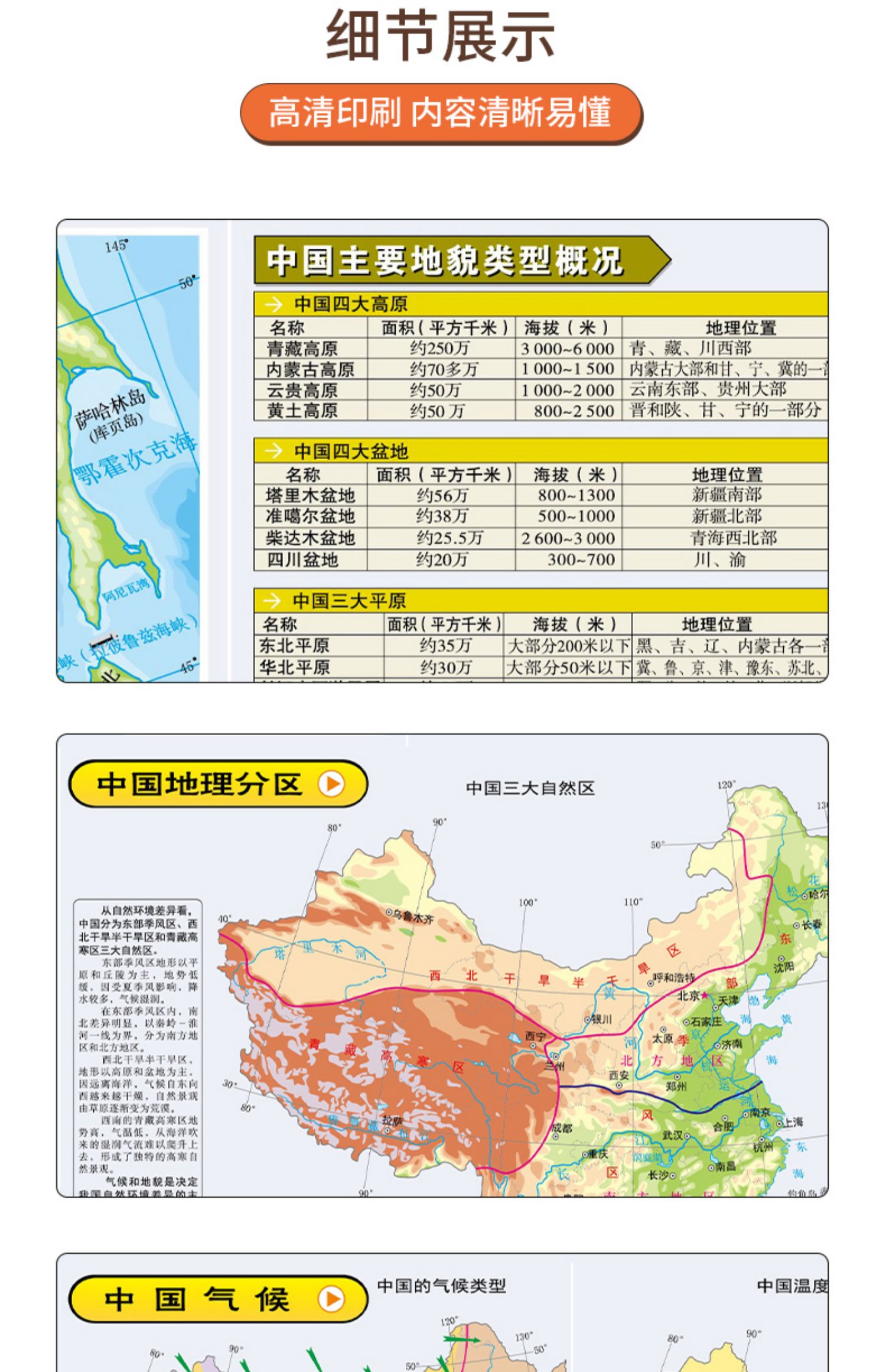 比新华书店超级划算,新课标中学生地理学习配套的~地形+政区二合一,内容多,知识点丰富!双面覆膜,防水耐磨!可折叠,方便携带!【赠运费险】