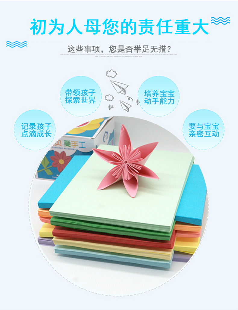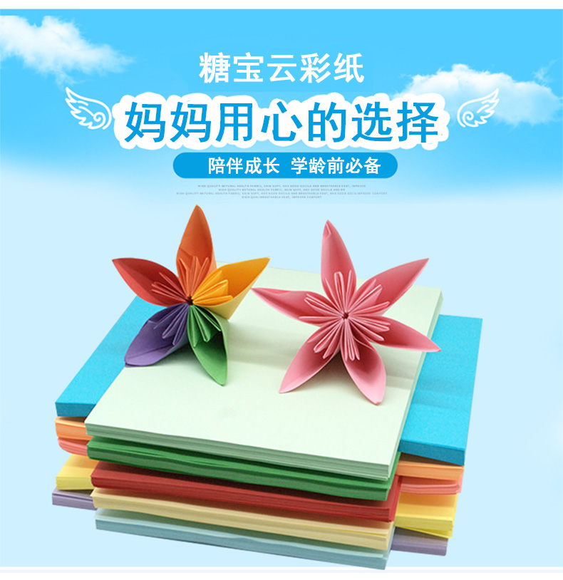 100张折纸,1.9元的价格,环保配方,炫丽多彩,纸质柔韧,边缘平整不伤手;锻炼宝贝专注力、创造力和协调力,远离电视手机,幼儿园亲子必备