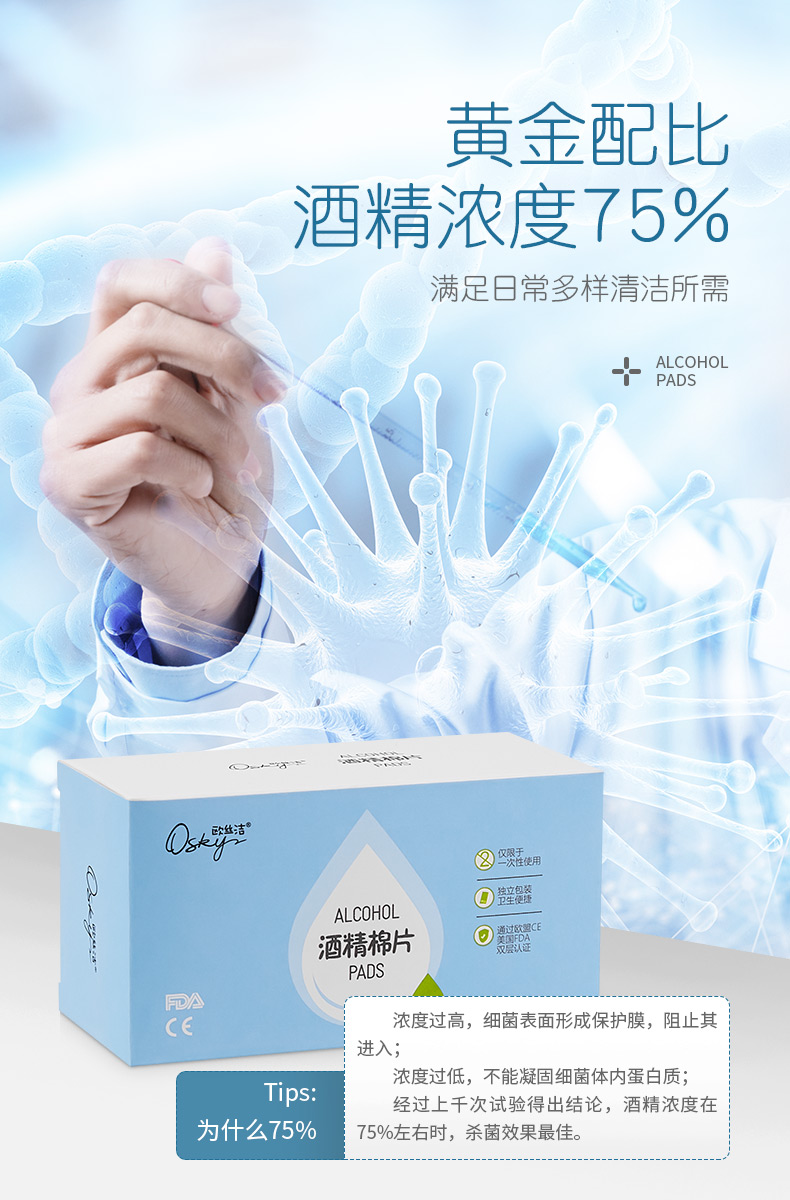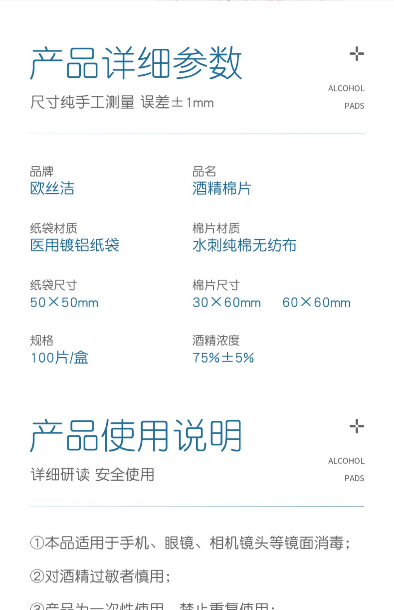 【买一送一】欧丝洁一次性大号酒精棉片,透气柔韧无纺布,亲肤又防菌~清洁手机屏,眼镜片,耳钉,餐具,伤口消毒,用途多多!简直是居家必备良品呀!【赠运费险】