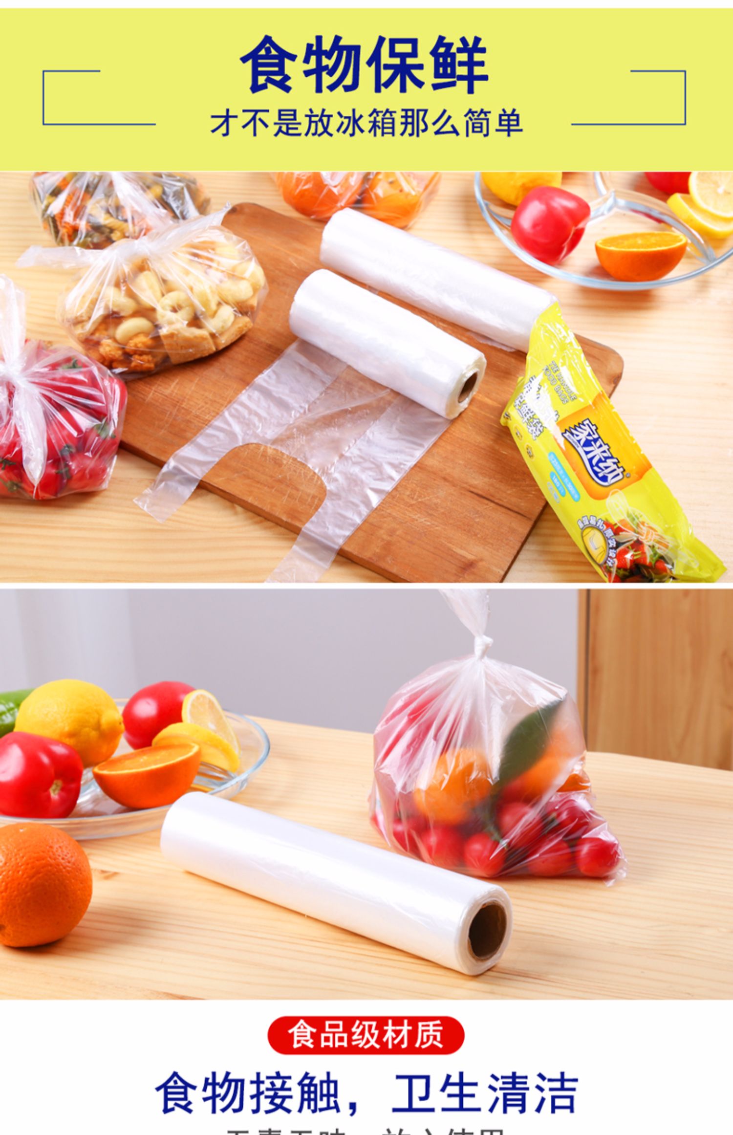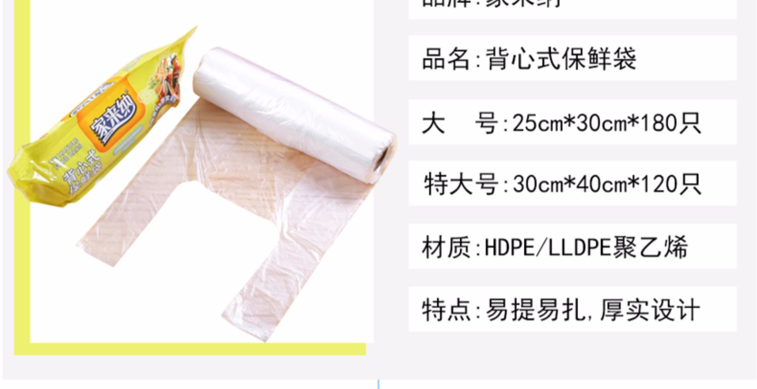 第二件半价,第三件0元,家来纳保鲜袋,食品家用一次性超市加厚,蔬菜水果大号经济背心式平口,赠运费险