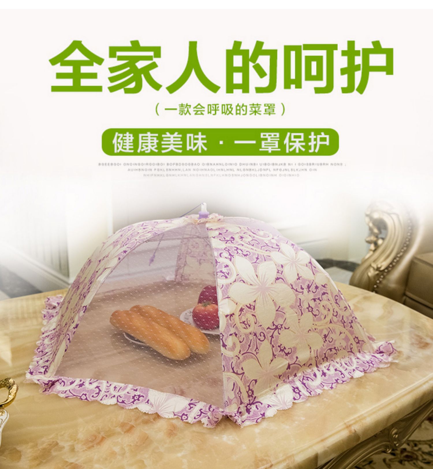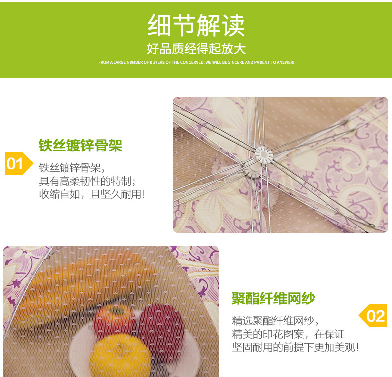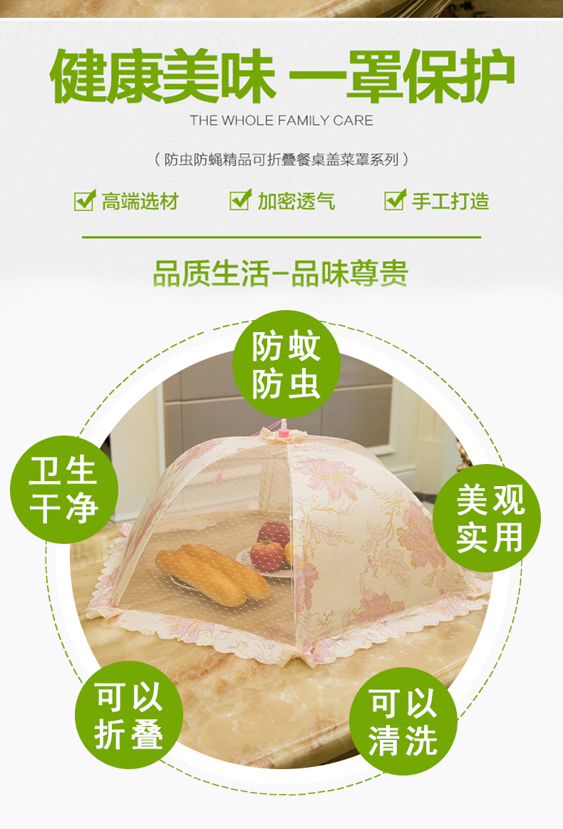 加大可折叠菜罩,加密网孔,360°防蚊防蝇防虫,加粗骨架,牢固耐用,可水洗,收纳方便不占地,健康美味,一罩保护!
