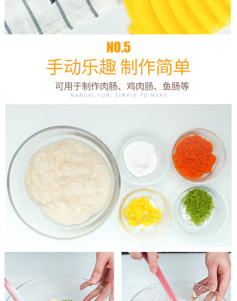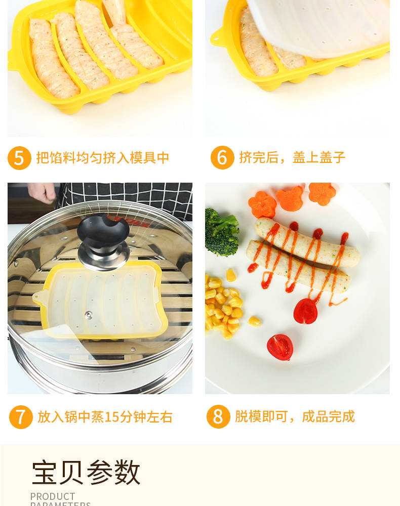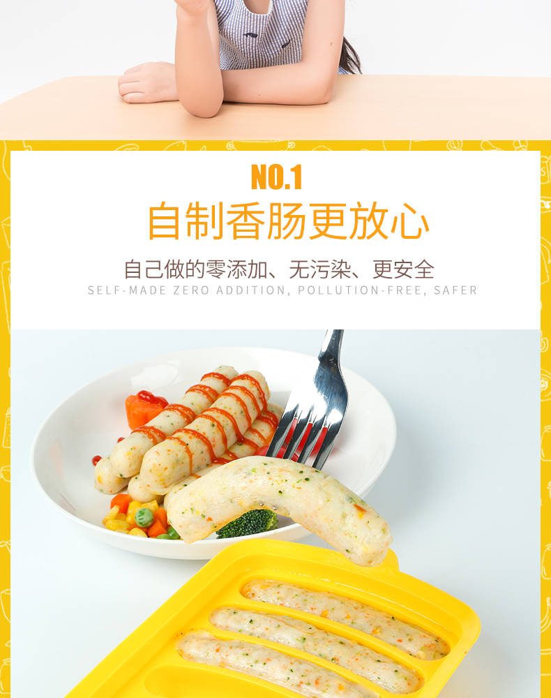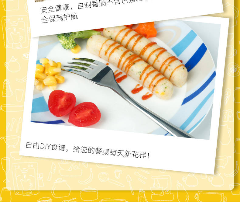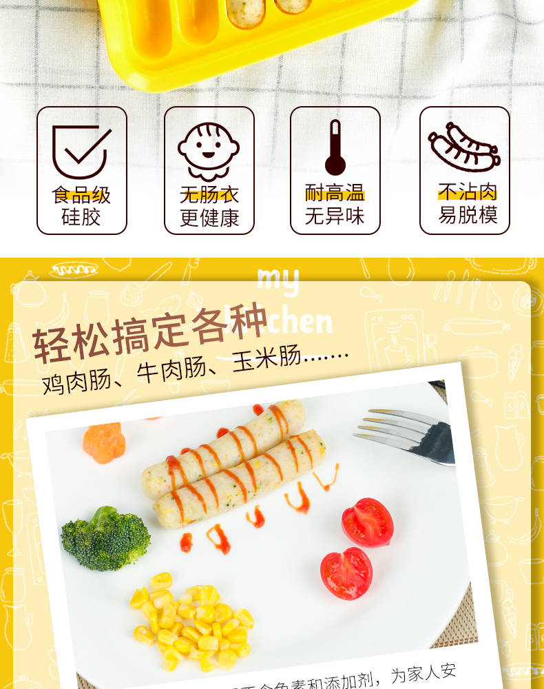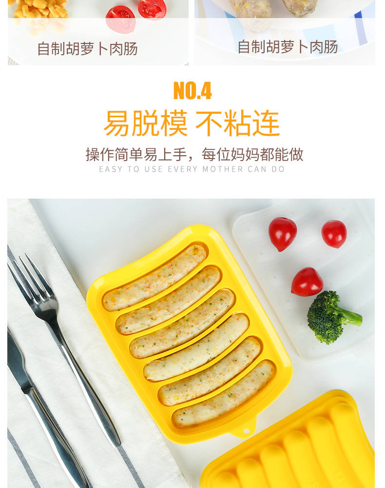 母婴品质,宝宝健康,轻松搞定各种香肠制作,操作简单,每个妈妈都可以轻松做出来好吃美味的香肠!易脱膜,操作超简单,买来给宝宝做辅食!