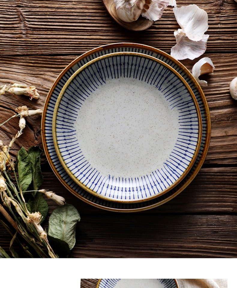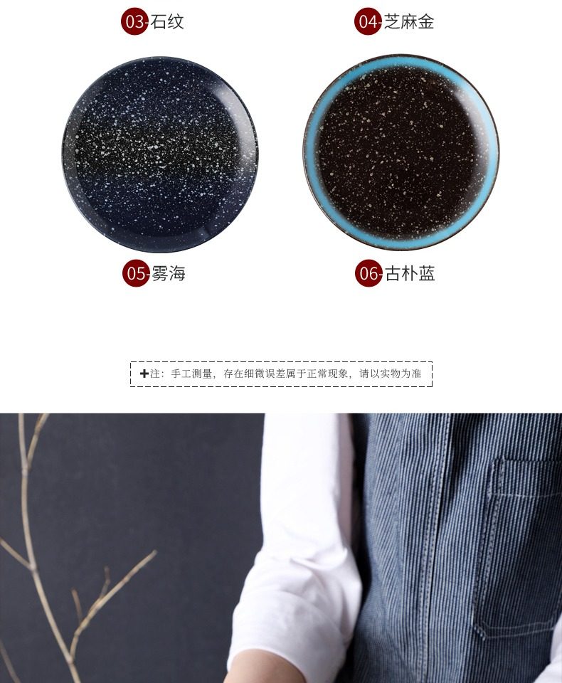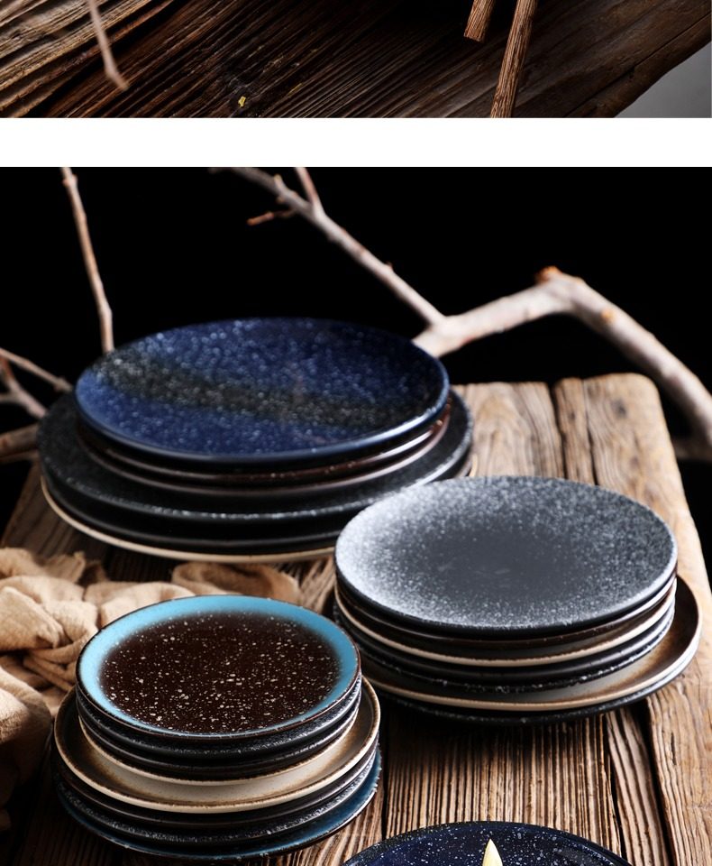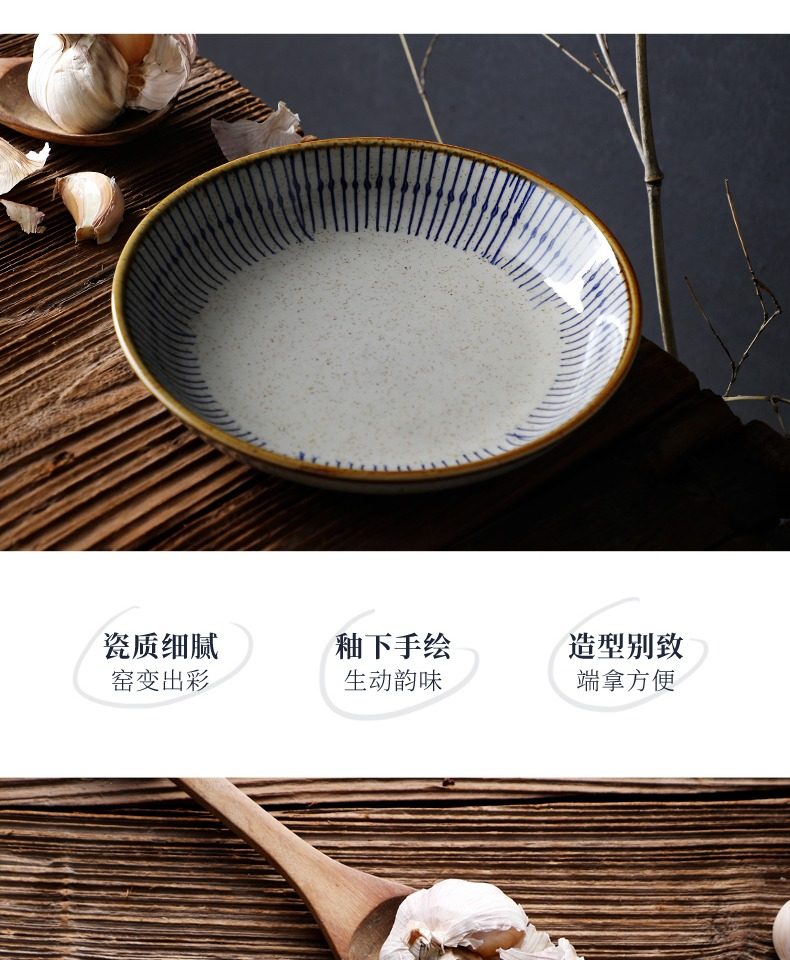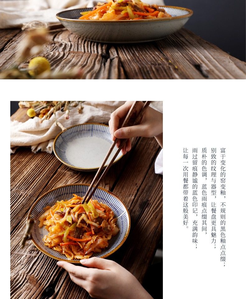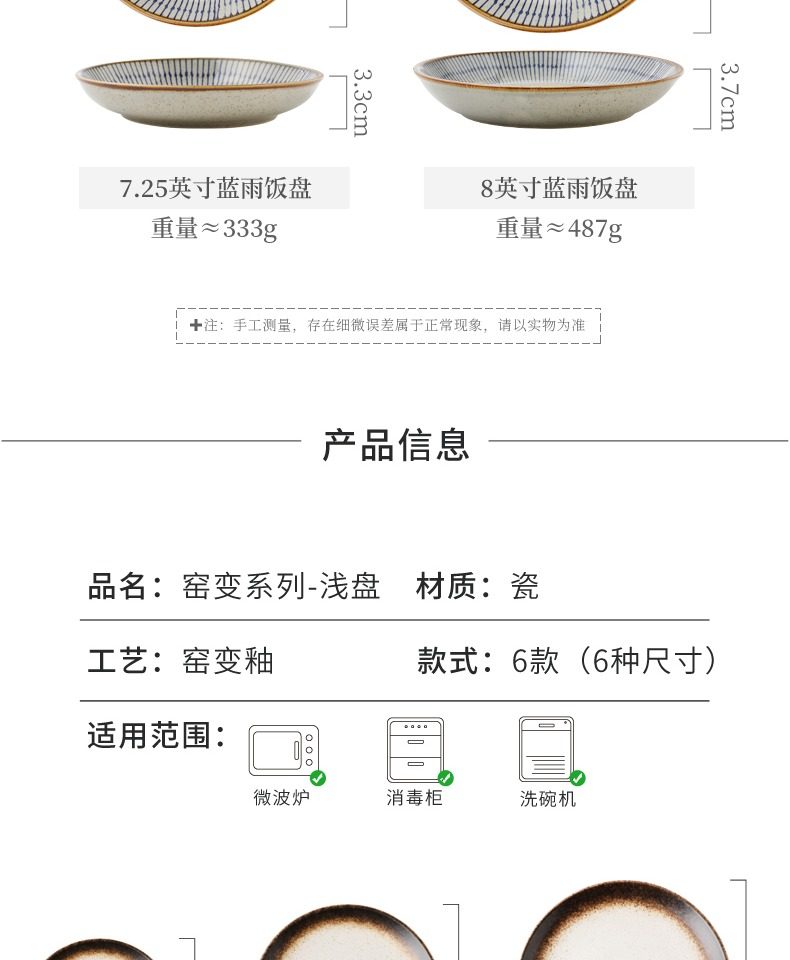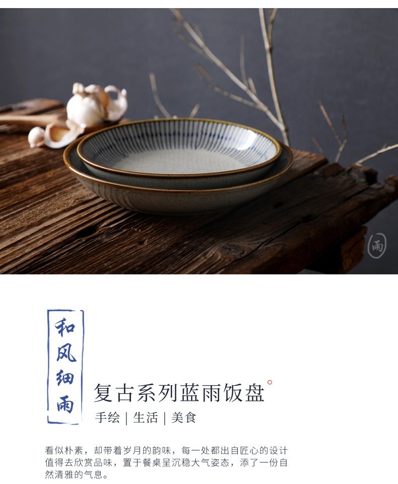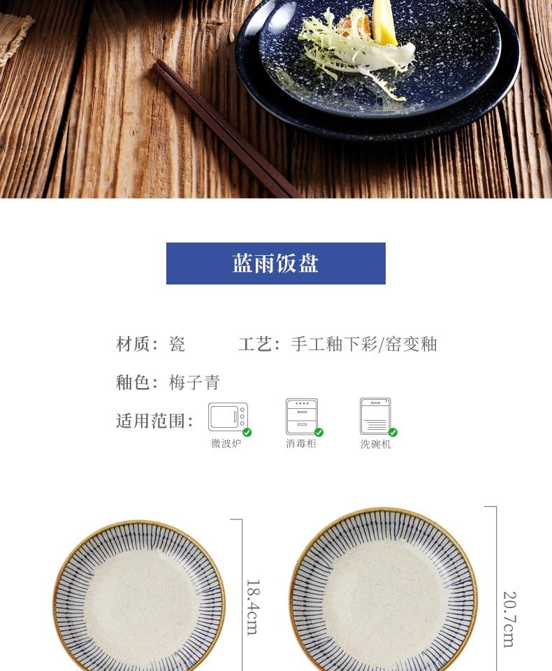复古系列蓝雨饭盘,瓷质细腻,窑变出彩,釉下手绘,生动韵味,造型别致,端拿方便,视觉美感,触感温和,沉稳大气,清雅气息.