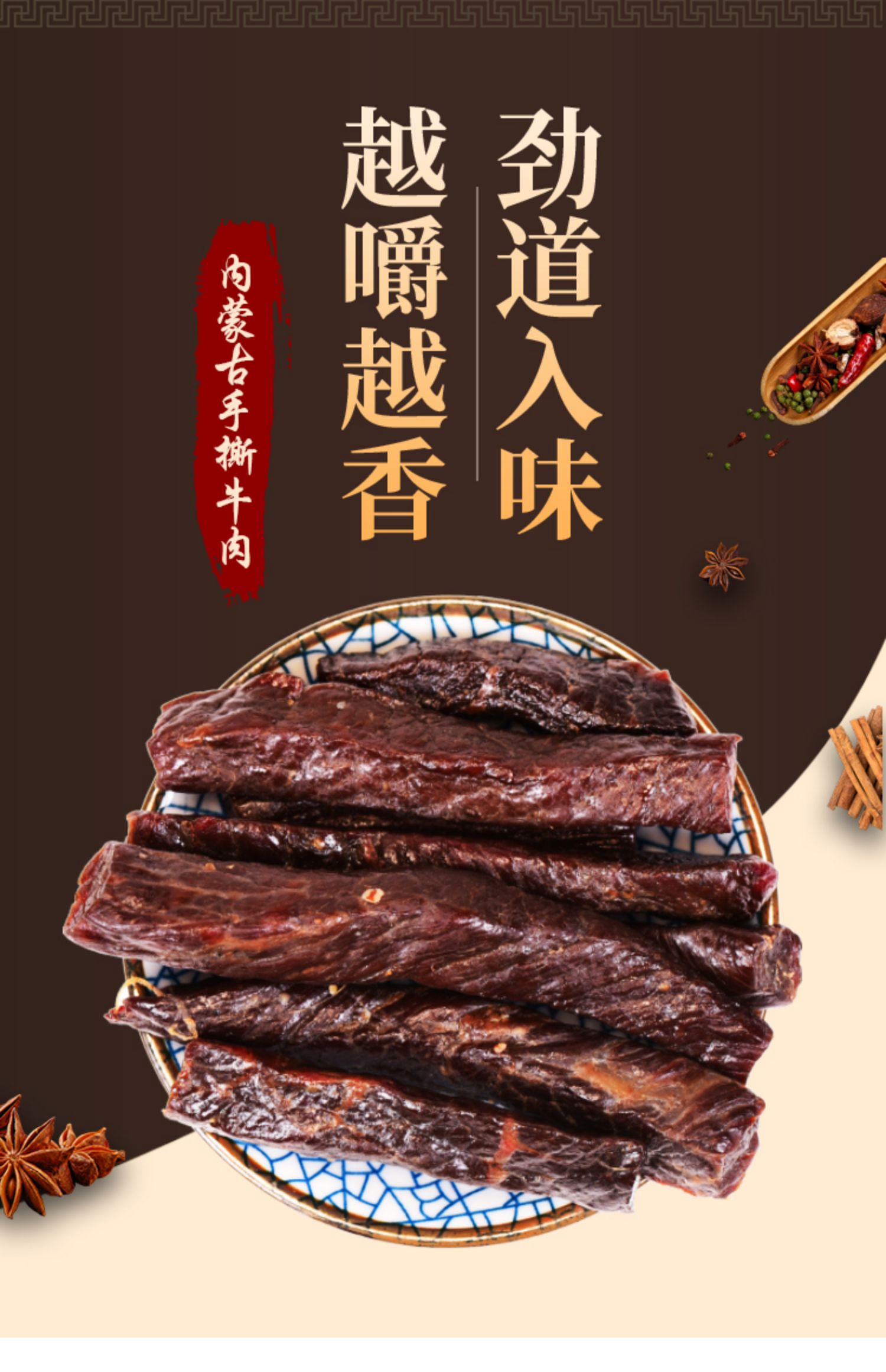 小朋友也能放心吃的好牛肉!源自内蒙古大草原,优质牛肉,手撕牛肉干,传统工艺,浓香四溢,入口迷醉,真空袋装,即吃即撕,方便快捷,追剧,旅游休闲必备!