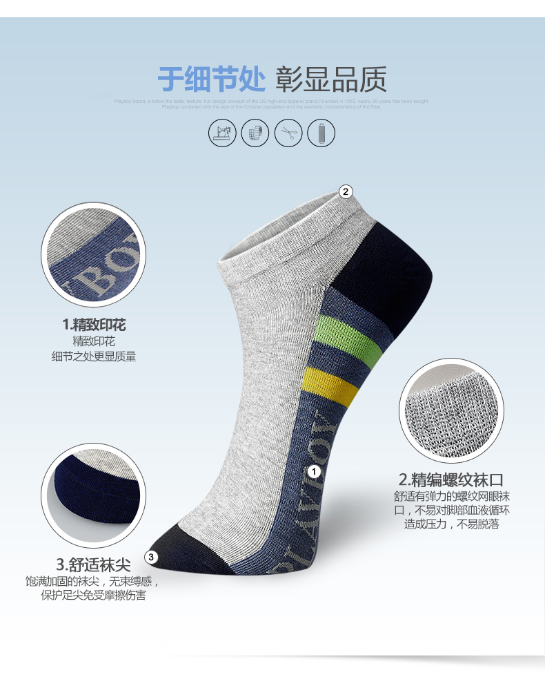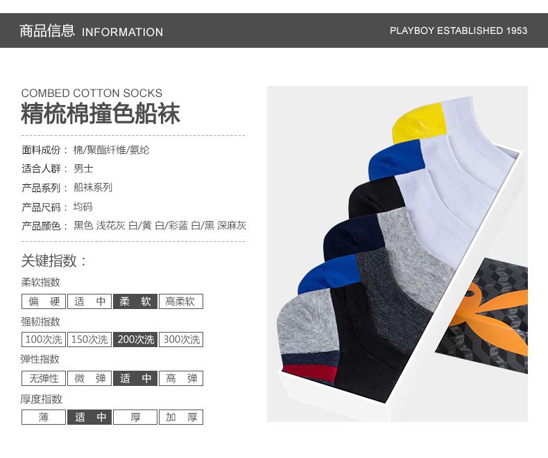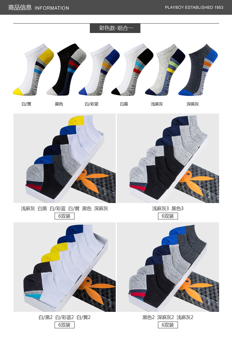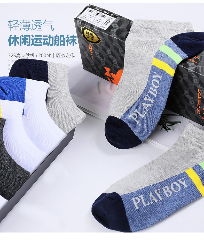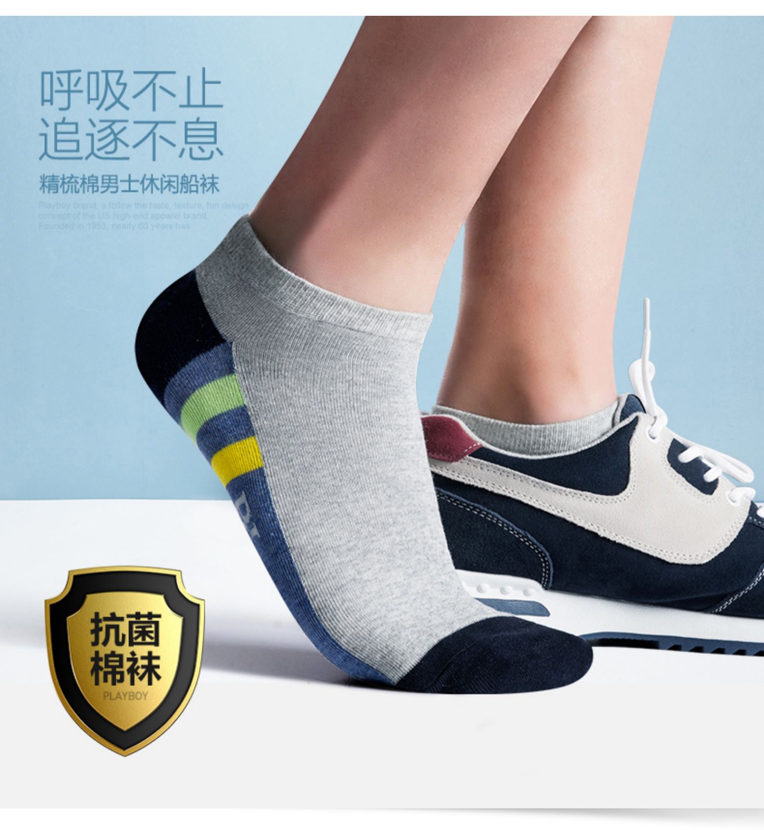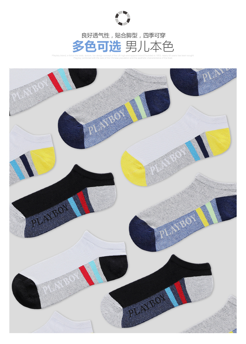 花花公子船袜,精选精梳棉,贴合脚型,透气畅想自由,多款花色可选,品质好货超值!