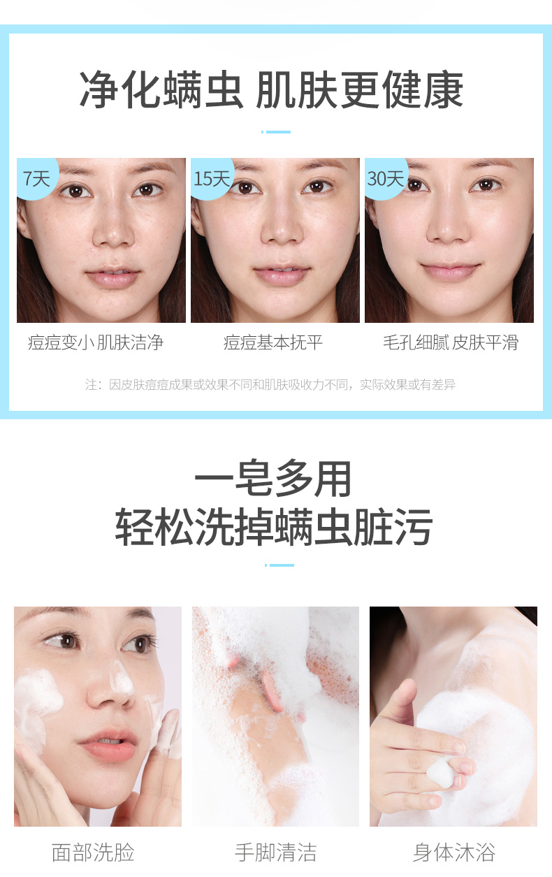 【第二件0元,拍两件】绵密泡沫深层渗透毛孔,清除螨虫细菌油污的同时,还能控油抗痘。含温和氨基酸,对皮肤无刺激,洗后水润不泛干,孕妇和敏感肌也能用。一皂多用,除螨皂=洗面奶+洗手液+沐浴露。