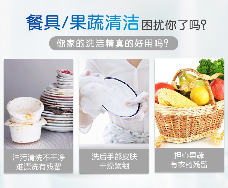 植物精华,快速去油污,全新洁净因子,快速去油污,低泡易漂,安心无残留,餐具/果蔬更洁净,家人更健康