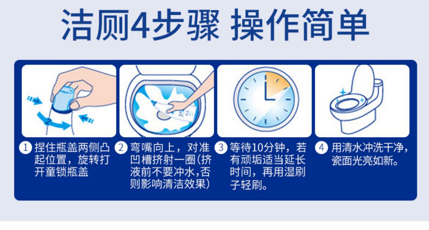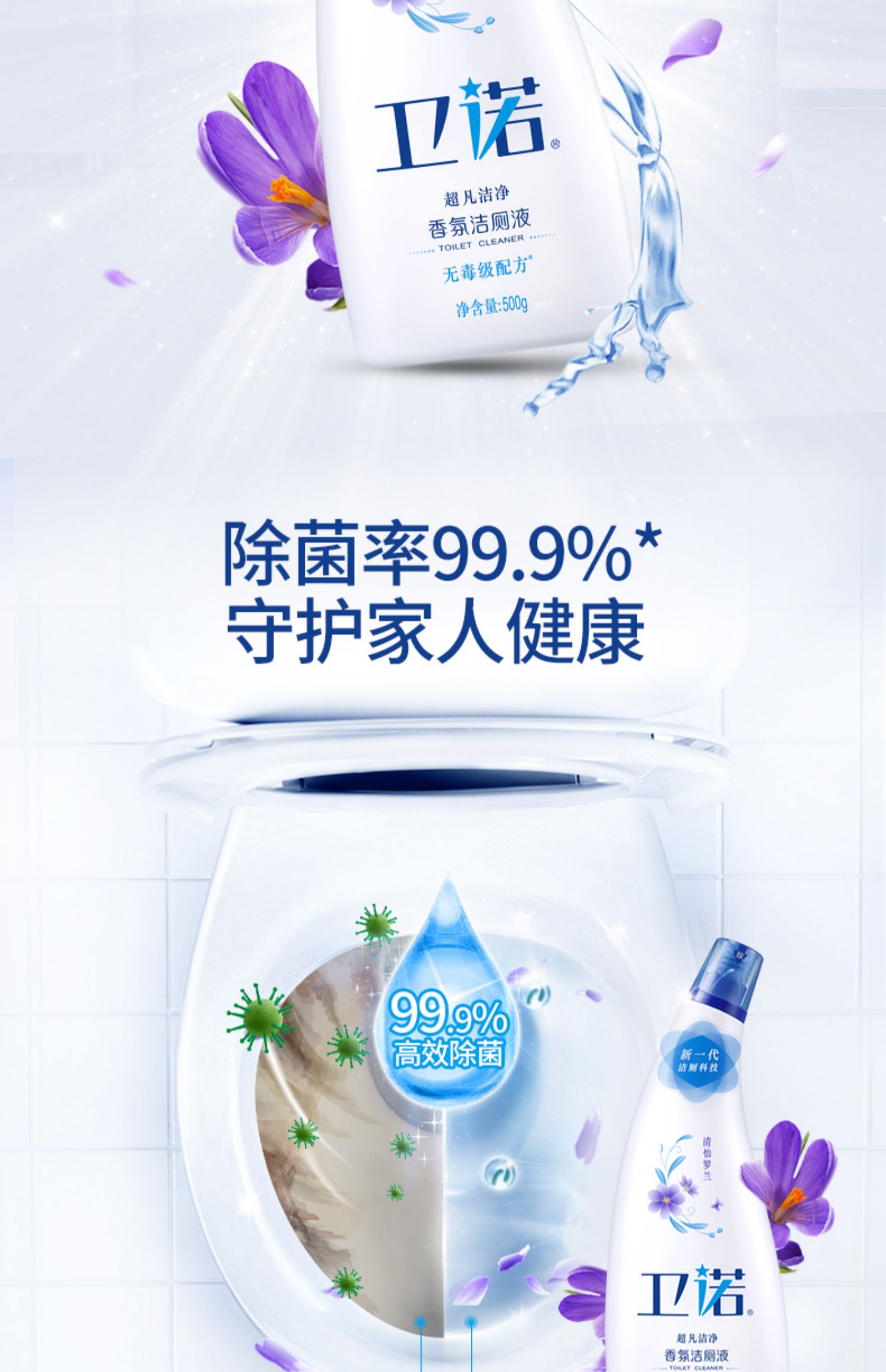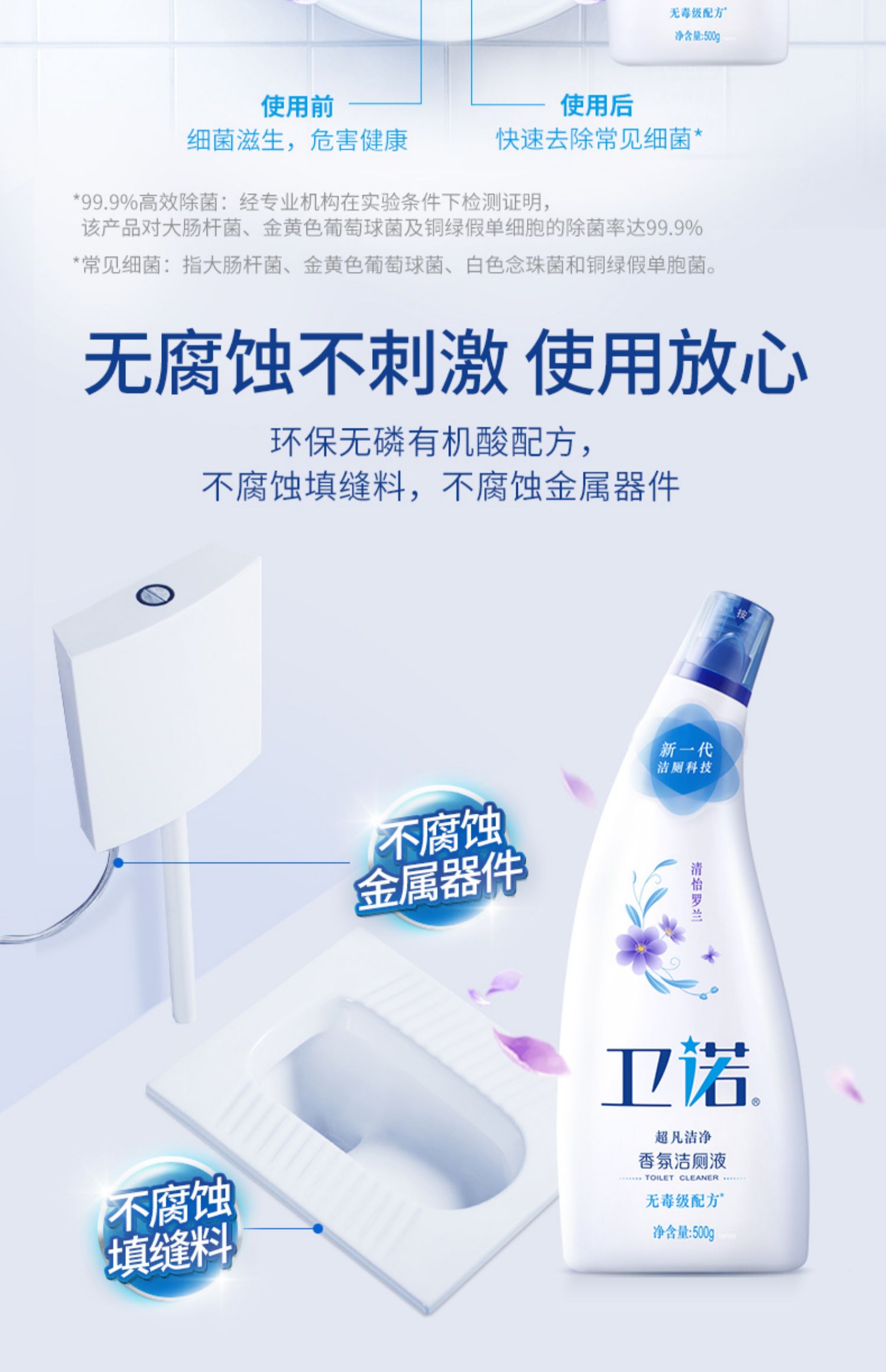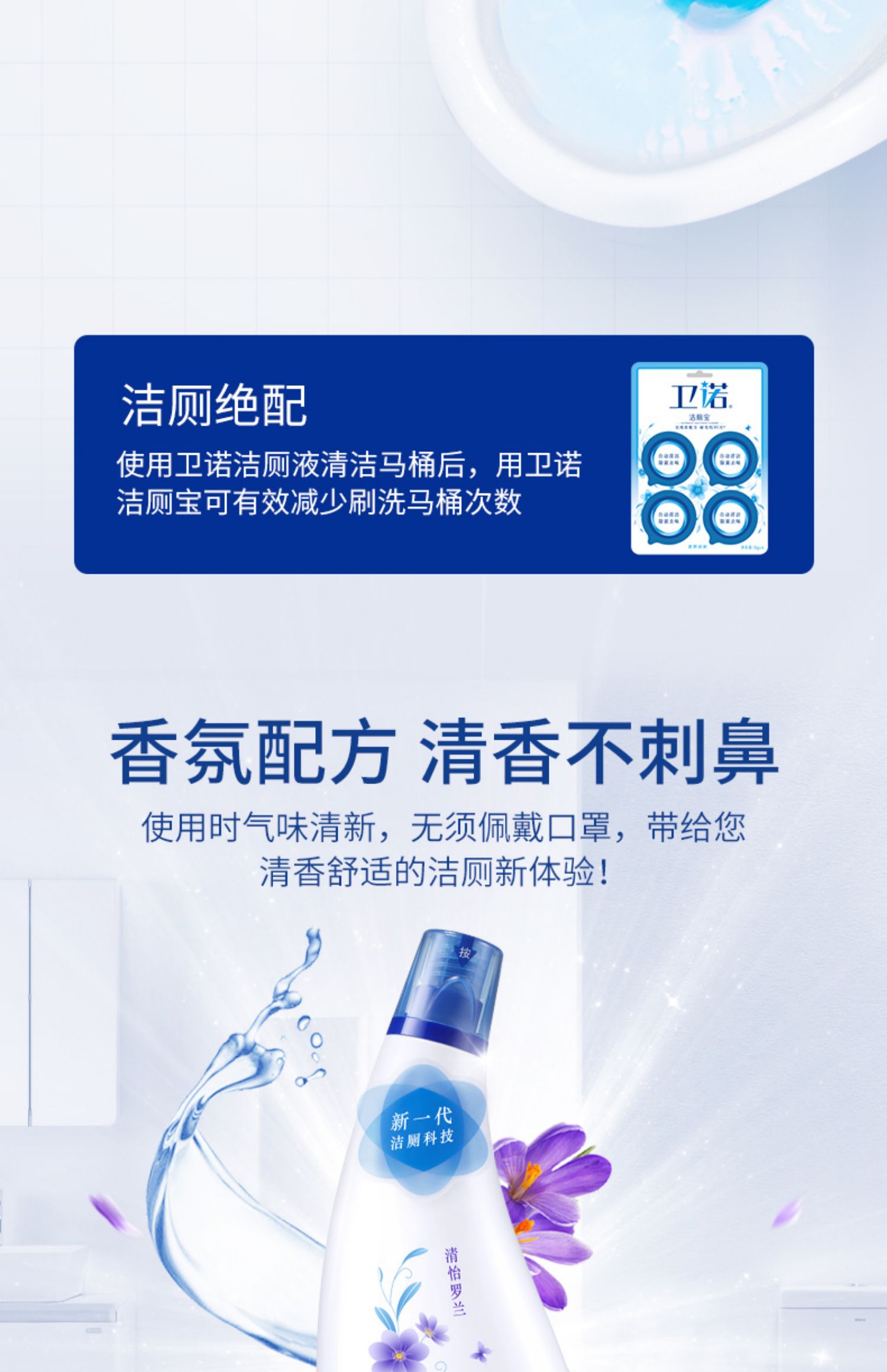 【蓝月亮大牌】卫诺洁厕液,拍1件是4瓶500ml滴,约半年用量,清香型洁厕液,解决你的四大烦恼,快速去除臭味,强力清洁去污,去垢,让马桶洁净保洁,清新怡人!