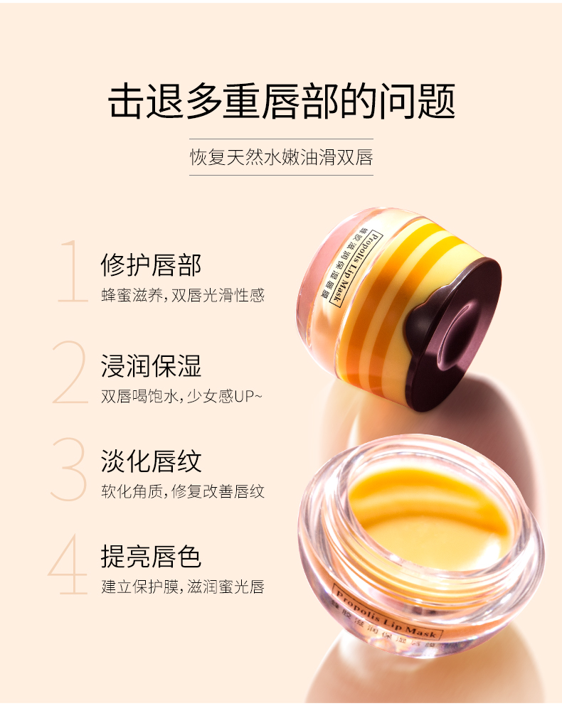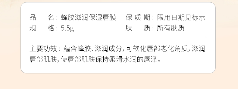 【第二件半价】蕴含蜂胶滋润成分,可软化唇部老化角质,滋润唇部肌肤,针对嘴唇干裂,脱皮唇纹,黯淡无光!使唇部肌肤保持柔滑水润的唇泽~