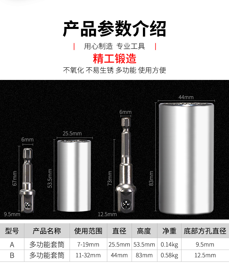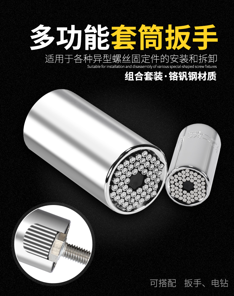 【送运费险】多功能套筒扳手,适用于各种异型螺丝固定件的安装和拆卸,可搭配扳手或者电钻,经久耐用,不易生锈多种规格。