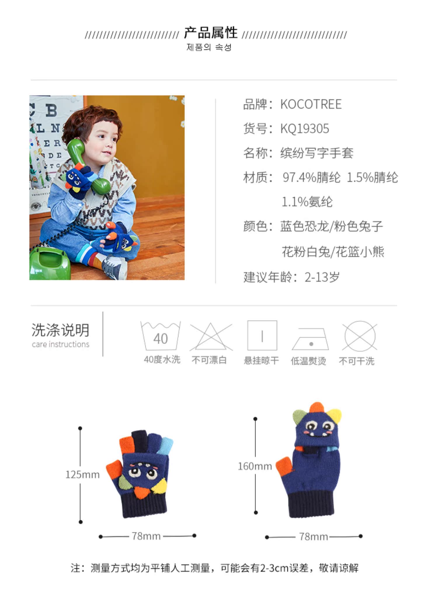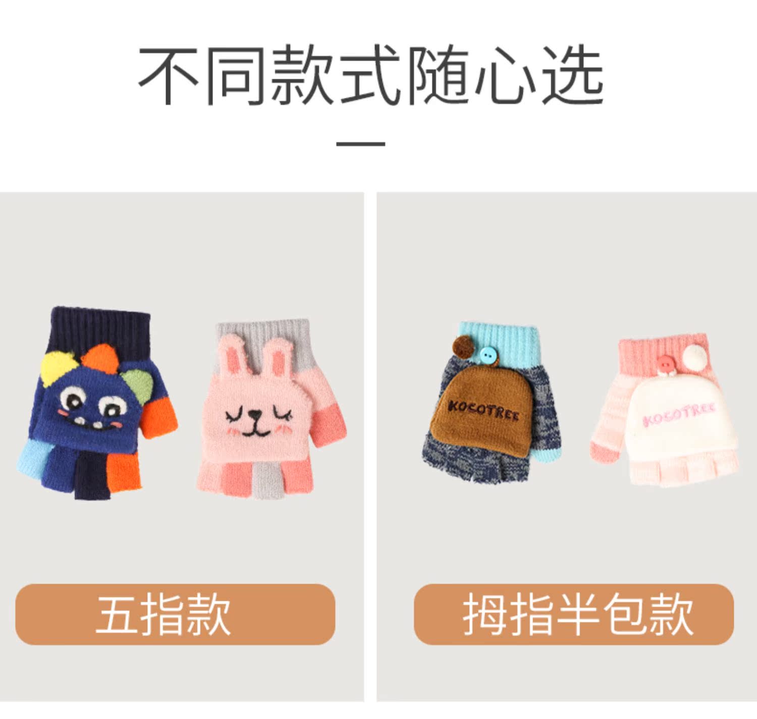 【满2件9折;满3件8.5折】【kocotree旗舰店】2-13岁小宝贝必备手套!精心针织工艺,柔软舒适,亲肤保暖,翻盖半指设计,方便写字、工作、玩耍,手指更灵活,这个冬天宝宝有它就够啦!