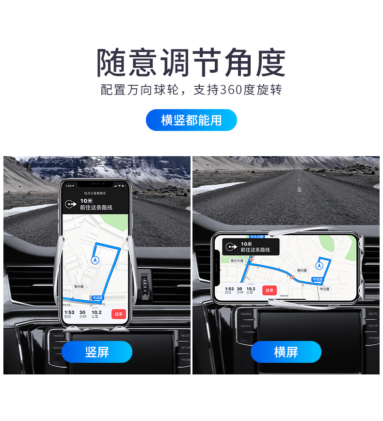 【抖音同款】无线车载充电手机支架,10w快充,可以旋转,红外线感应即放立夹,多种款式可选,是支架也是充电宝,有车一族必备