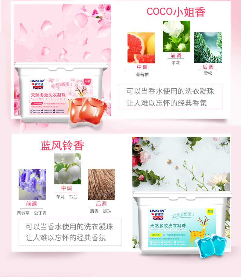 一盒40颗,可以用好久了,两款香型可选!COCO小姐+祖马龙蓝风铃,洗衣凝珠强力去污香水型,机洗多色持久留香,除菌洗衣球,能抑菌的才是好凝珠!