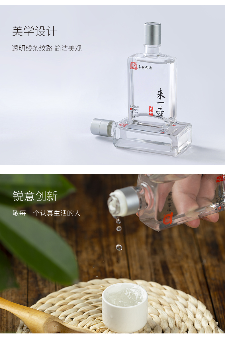 45度棉柔浓香经典,中度不刺激,口感更柔和,性价比高,用心酿造,干净纯正,醇厚绵长,饮后留香,回味悠长,聚会时刻来一壶,畅聊更尽兴