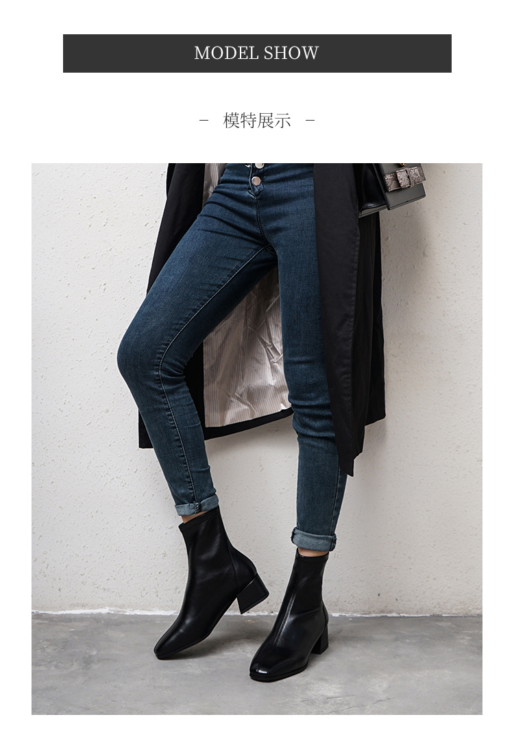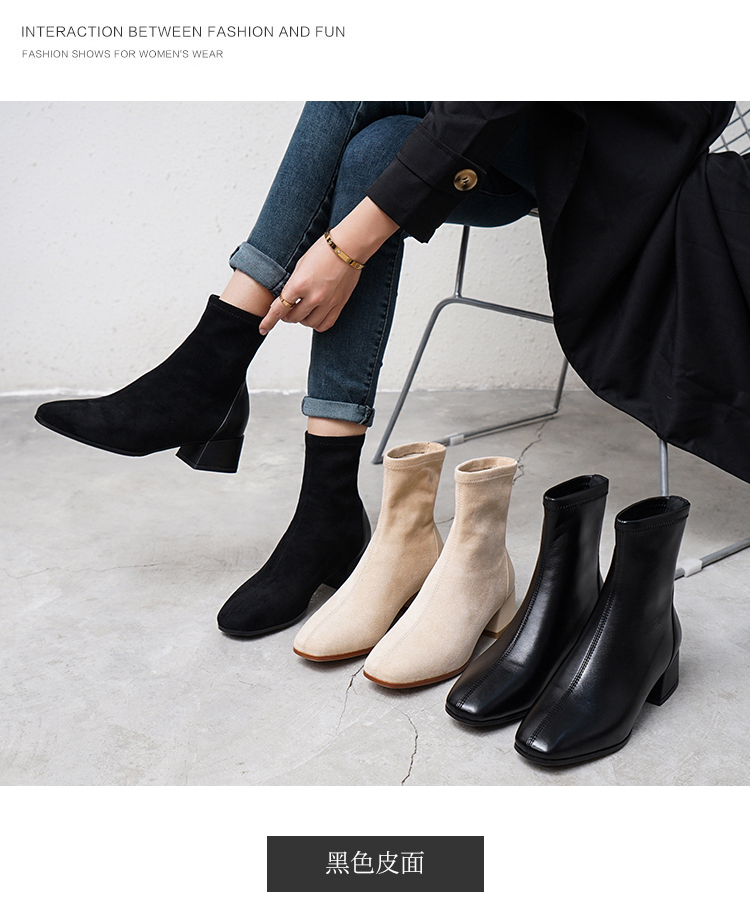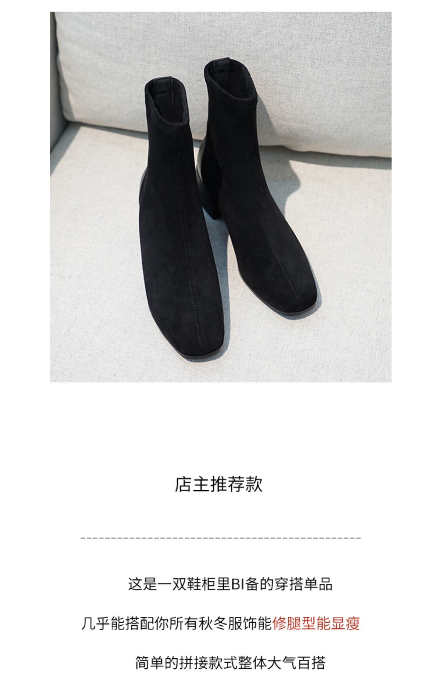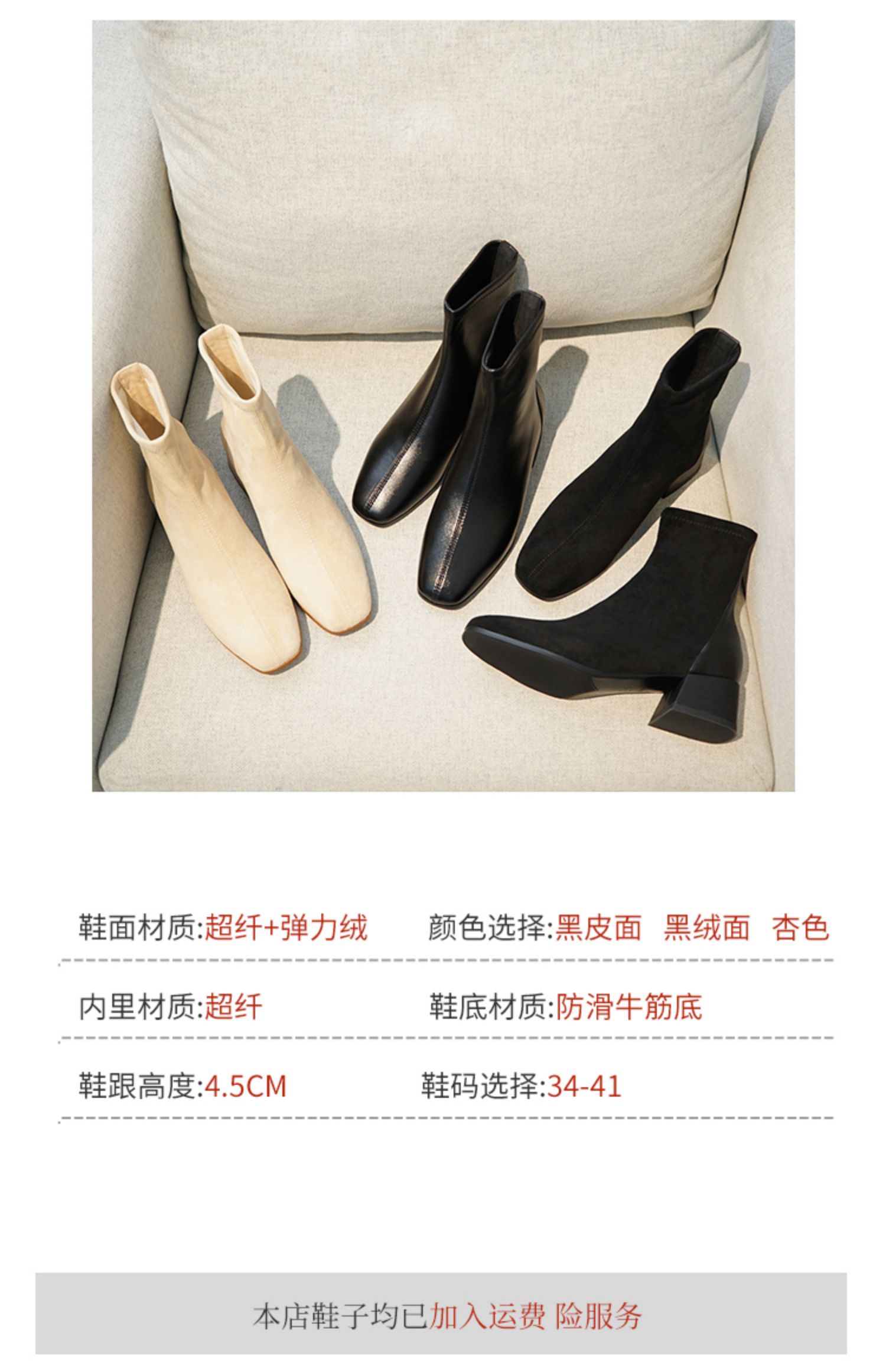 2019秋季新款,粗跟方头马丁短靴,柔软舒适,纤细楦型,显瘦有型,粗中跟橡胶鞋底,让你更爱上行走。【赠运费险】