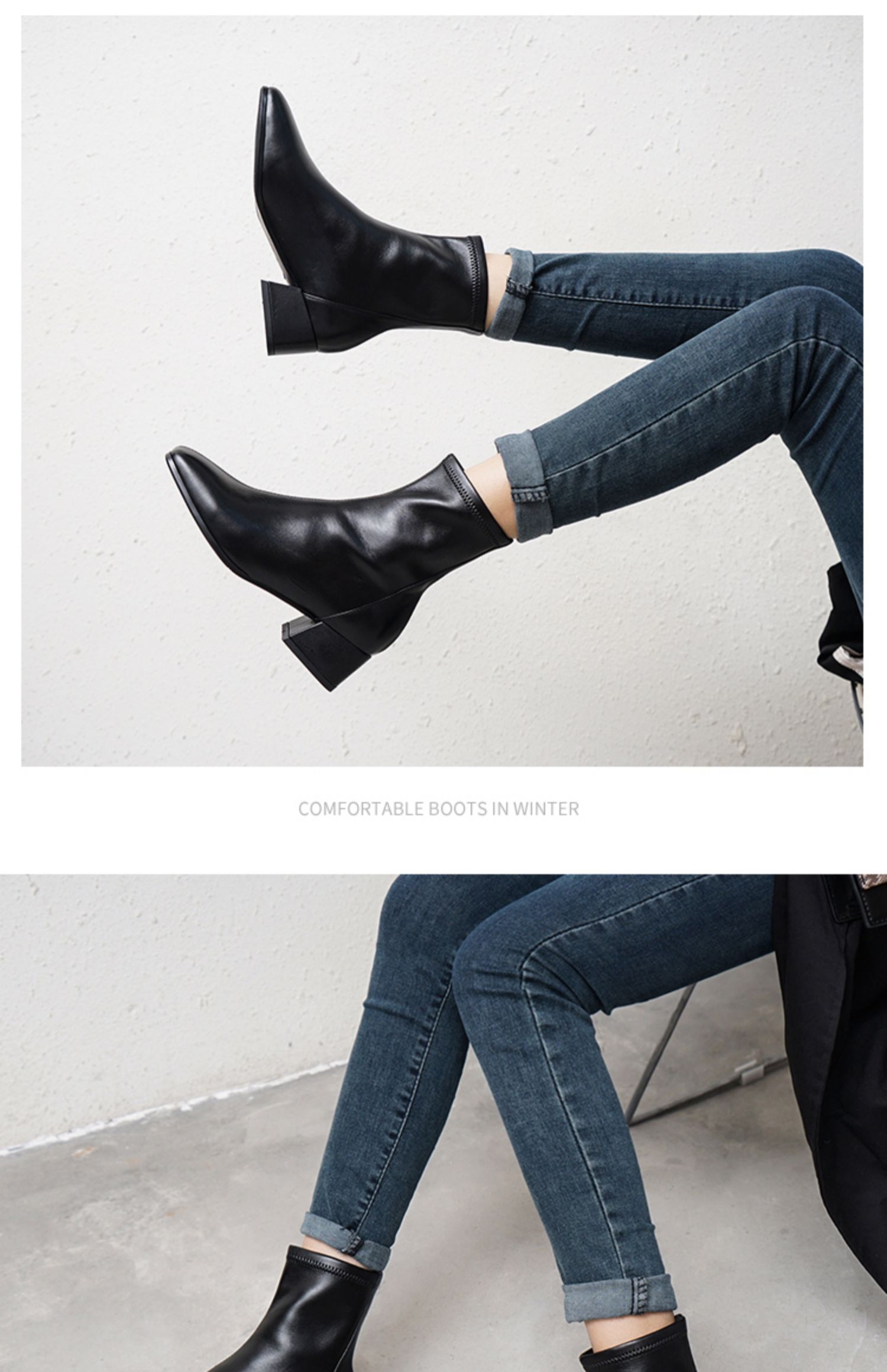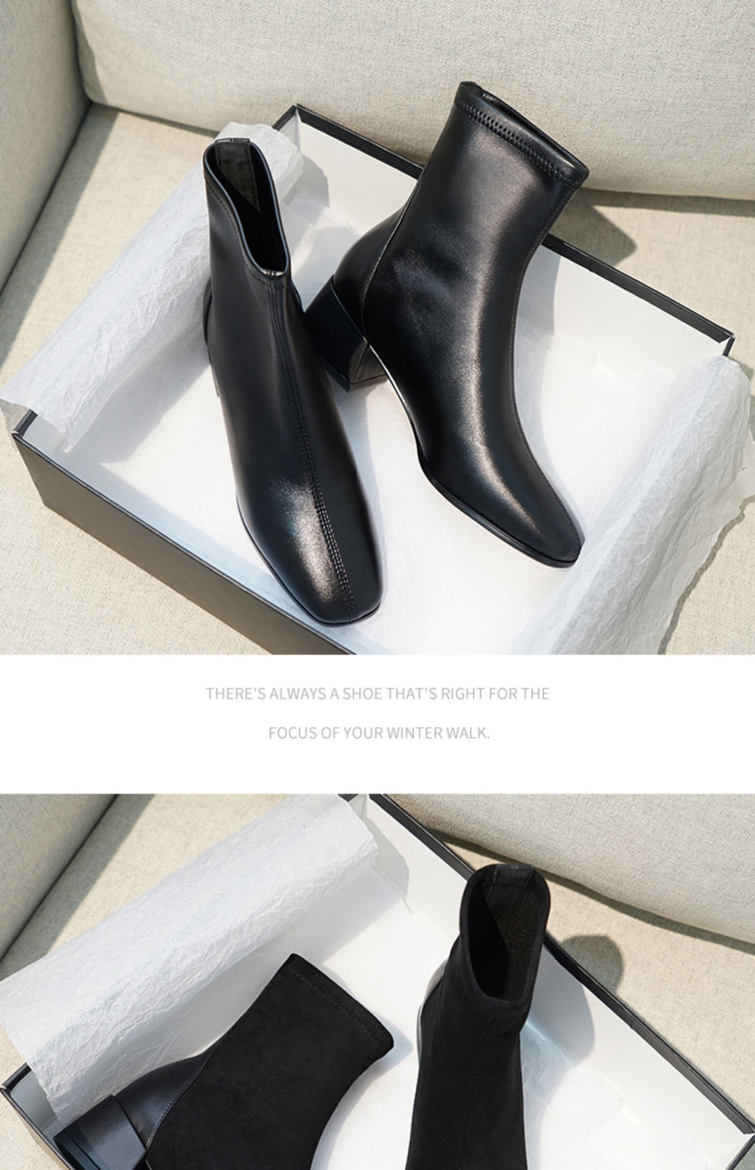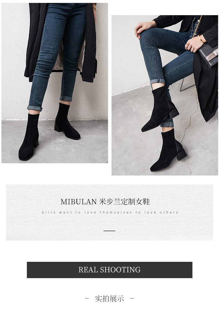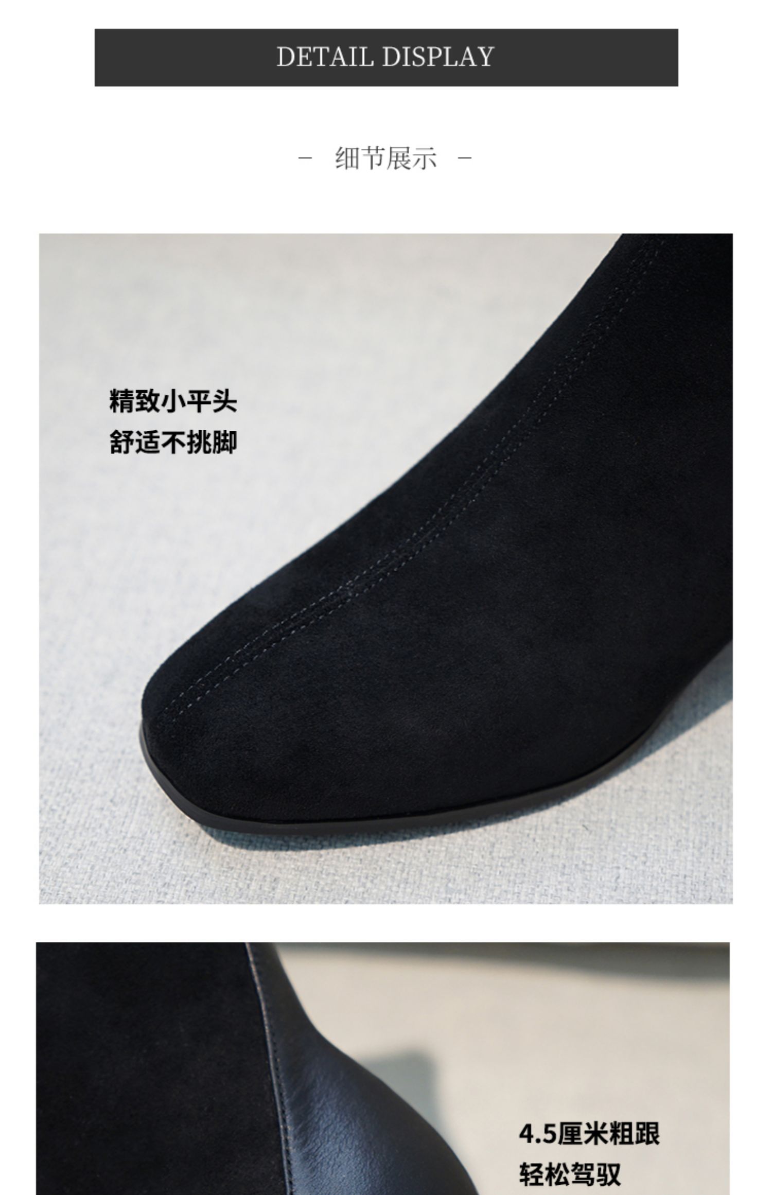 2019秋季新款,粗跟方头马丁短靴,柔软舒适,纤细楦型,显瘦有型,粗中跟橡胶鞋底,让你更爱上行走。【赠运费险】