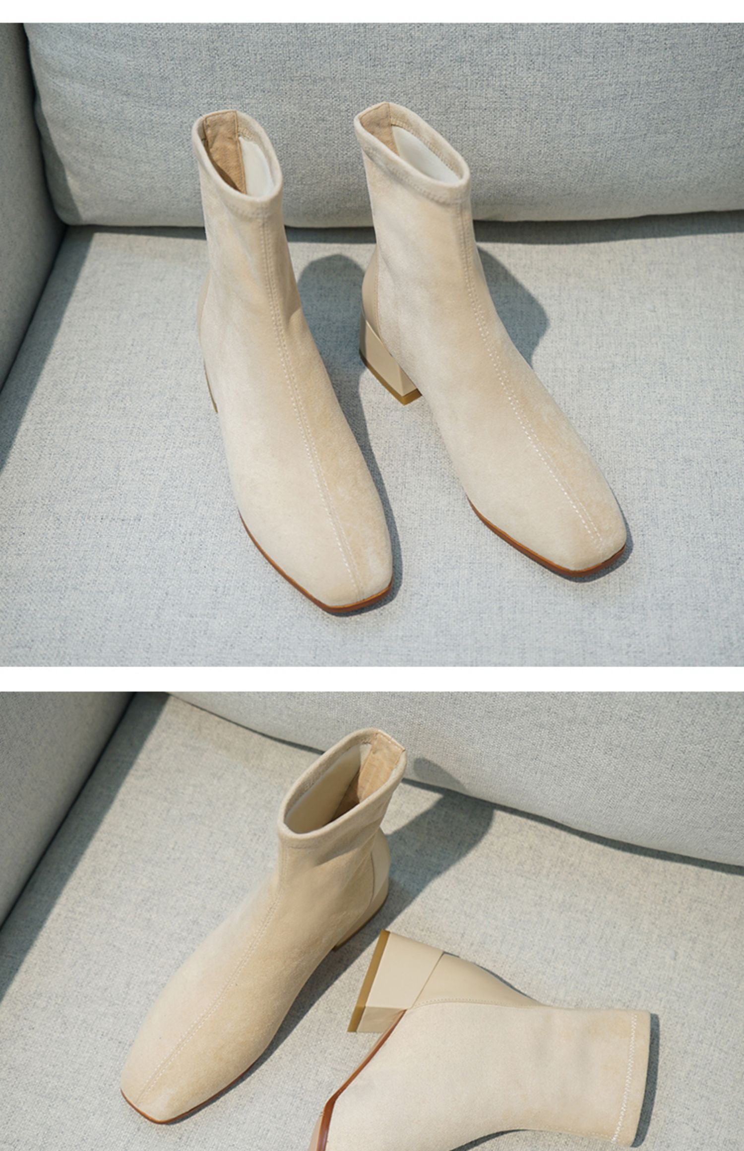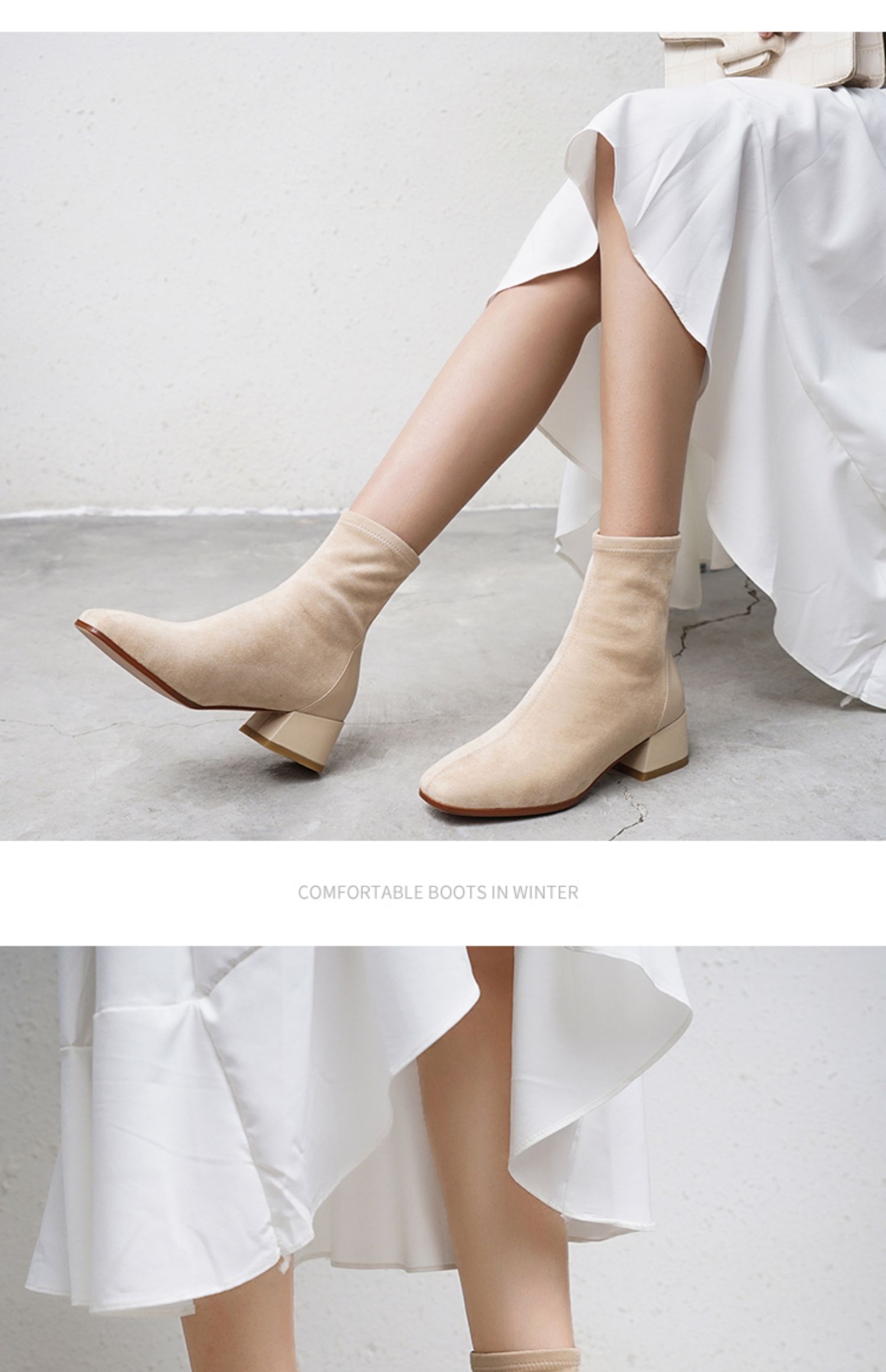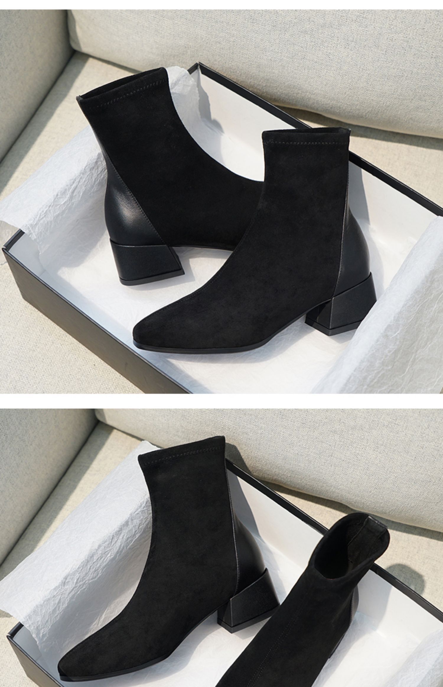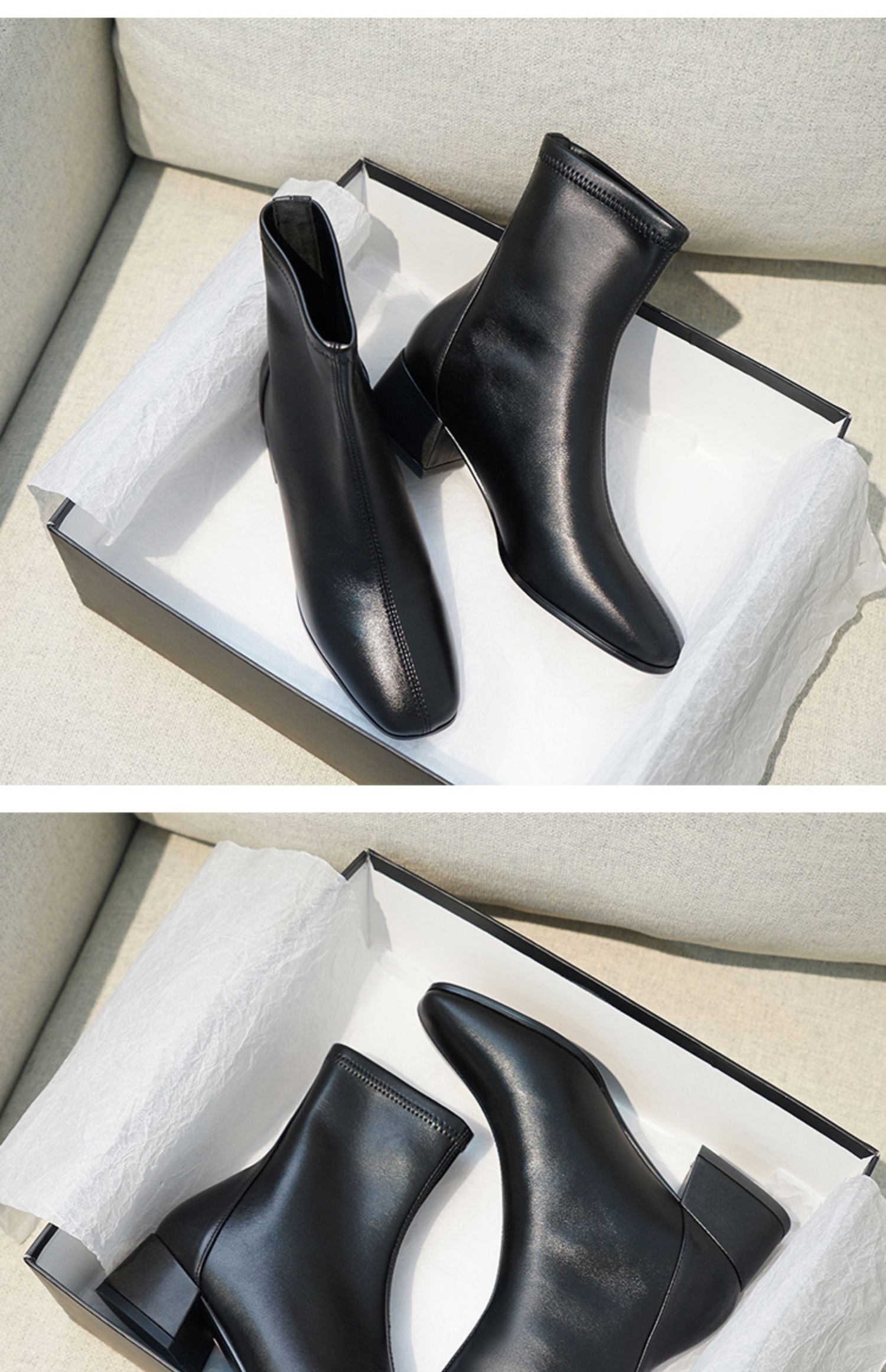 2019秋季新款,粗跟方头马丁短靴,柔软舒适,纤细楦型,显瘦有型,粗中跟橡胶鞋底,让你更爱上行走。【赠运费险】