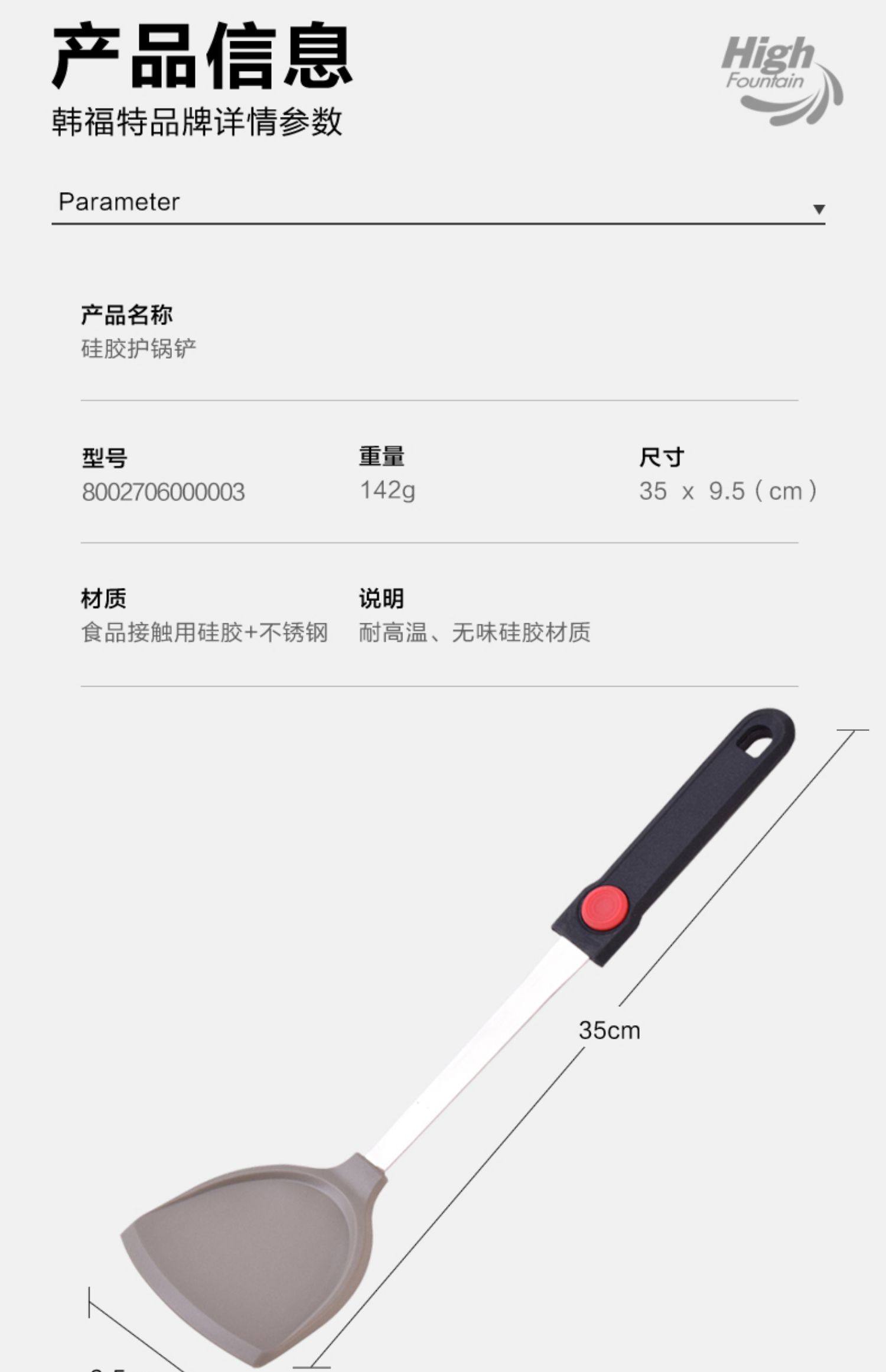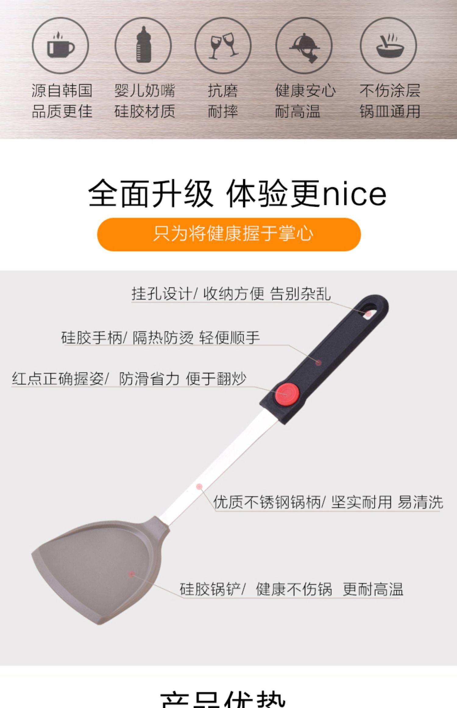 韩国品牌韩福特不粘锅硅胶锅铲,采用婴儿奶嘴用硅胶,健康安全,耐高温,环保有效延长锅具寿命,养锅护锅,煎,炒,盛汤均可。赠运费险