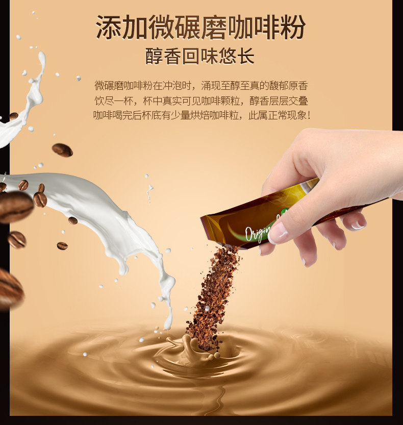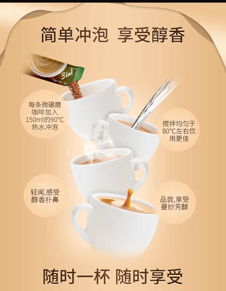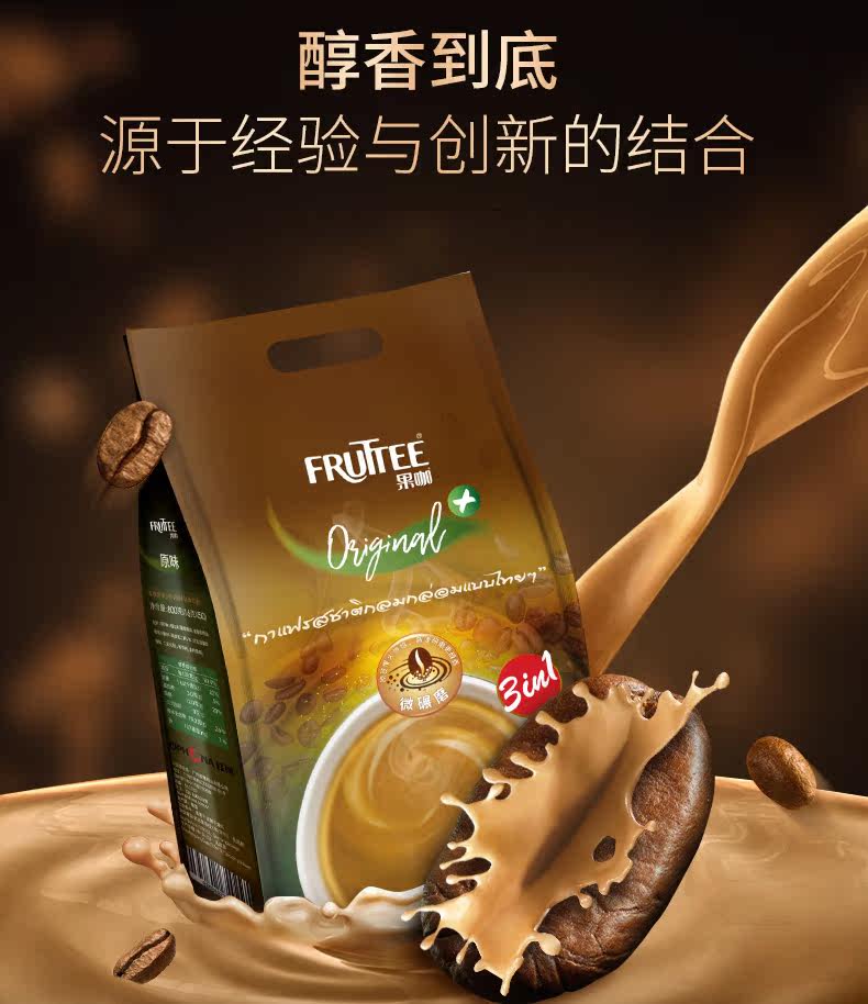 新品,新品,新品,重要的事说三遍,泰国原装进口,微碾磨原味三合一咖啡速溶咖啡粉,跨世纪的烘焙经验,原豆慢火烘焙,滋味纯正,丝滑醇香,泰式原初咖香,无杂质,细腻香甜,回味悠长醇香。