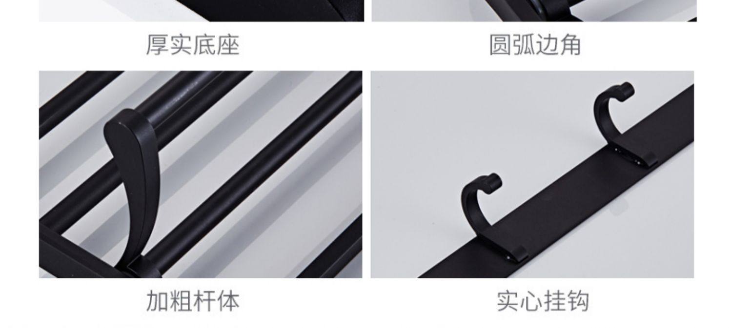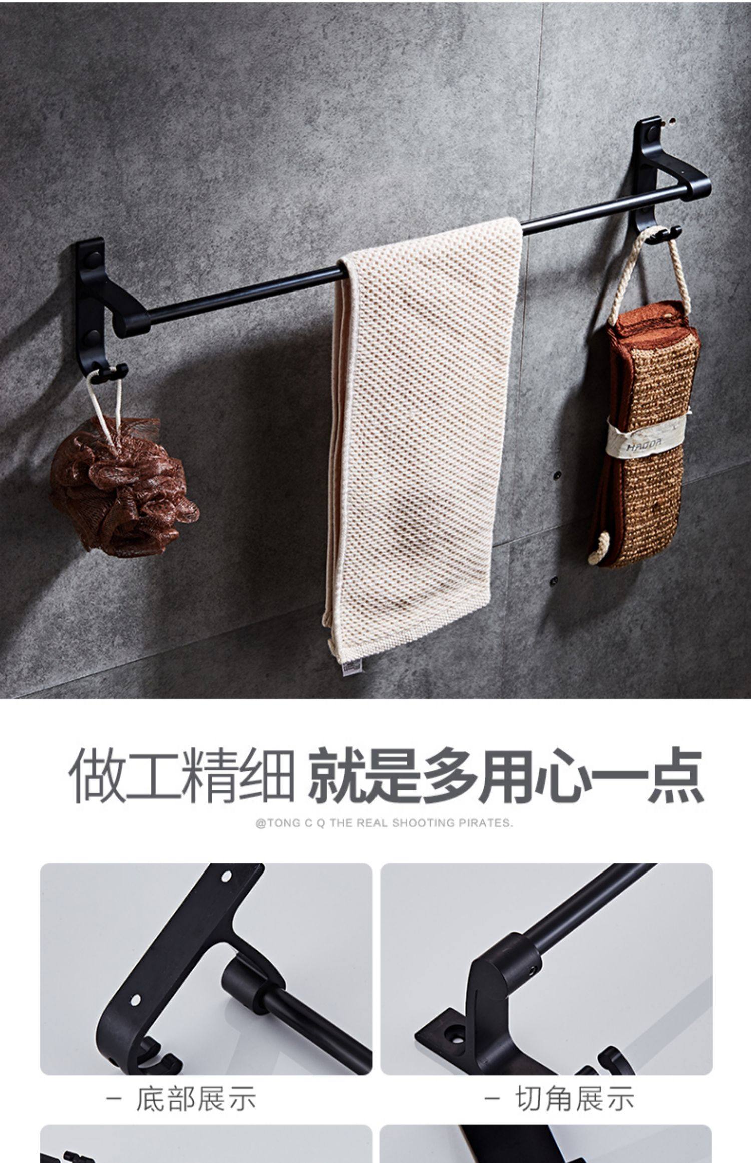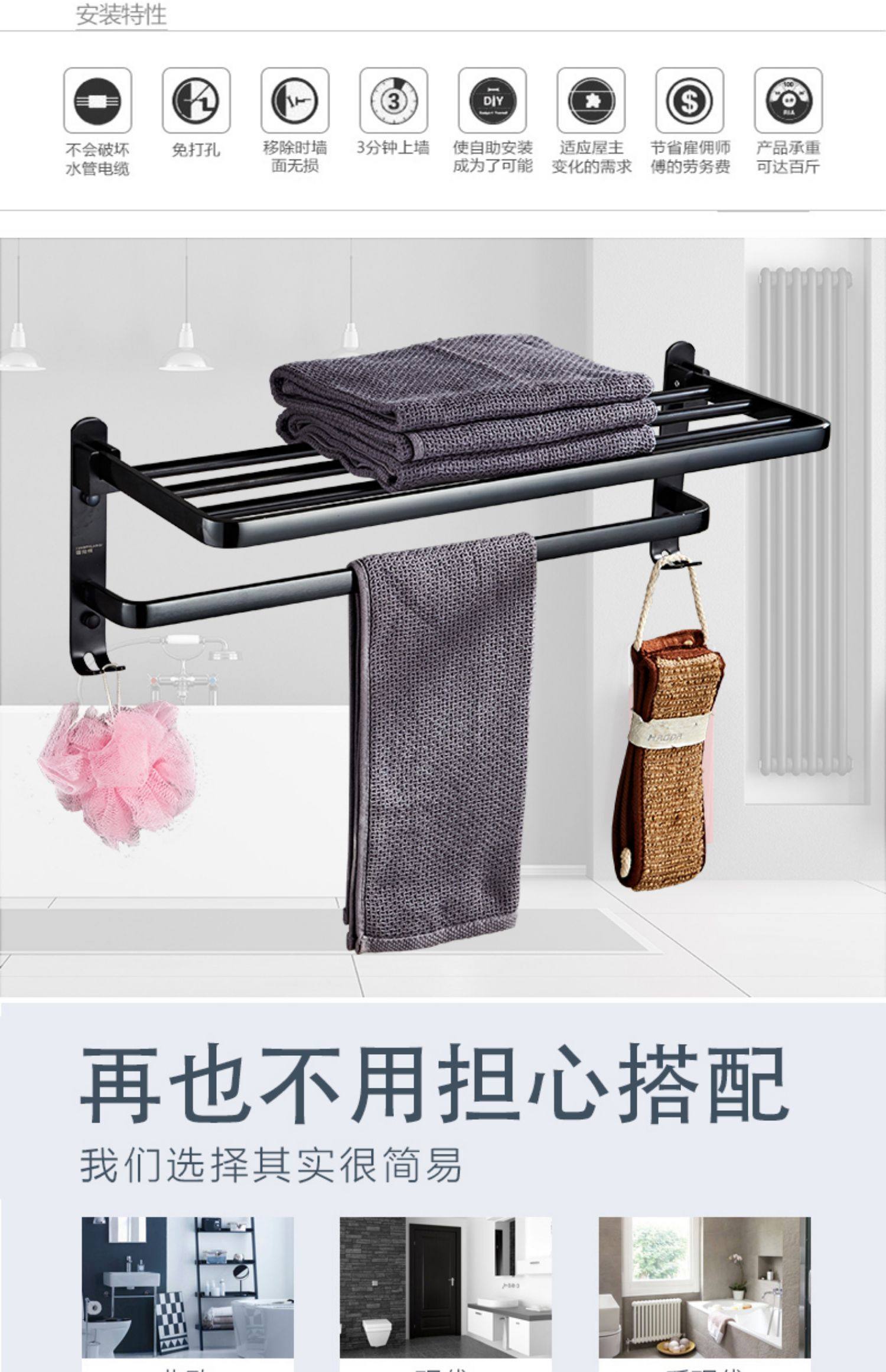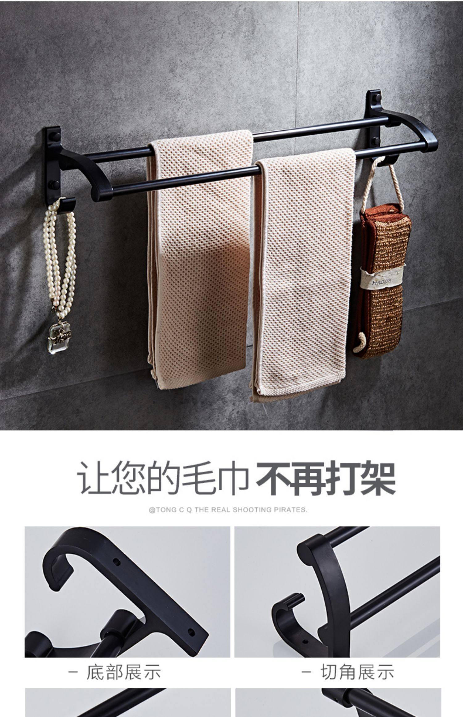 【免打孔】黑色太空铝排钩毛巾架置物架
