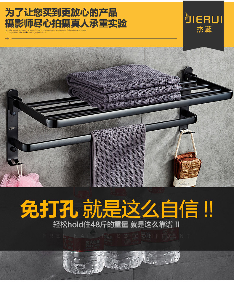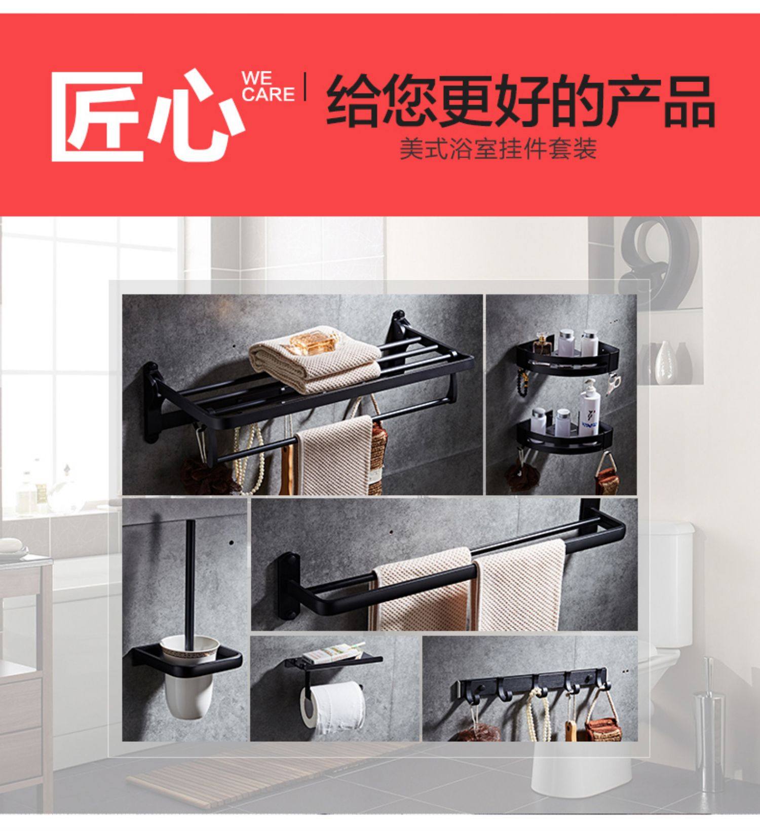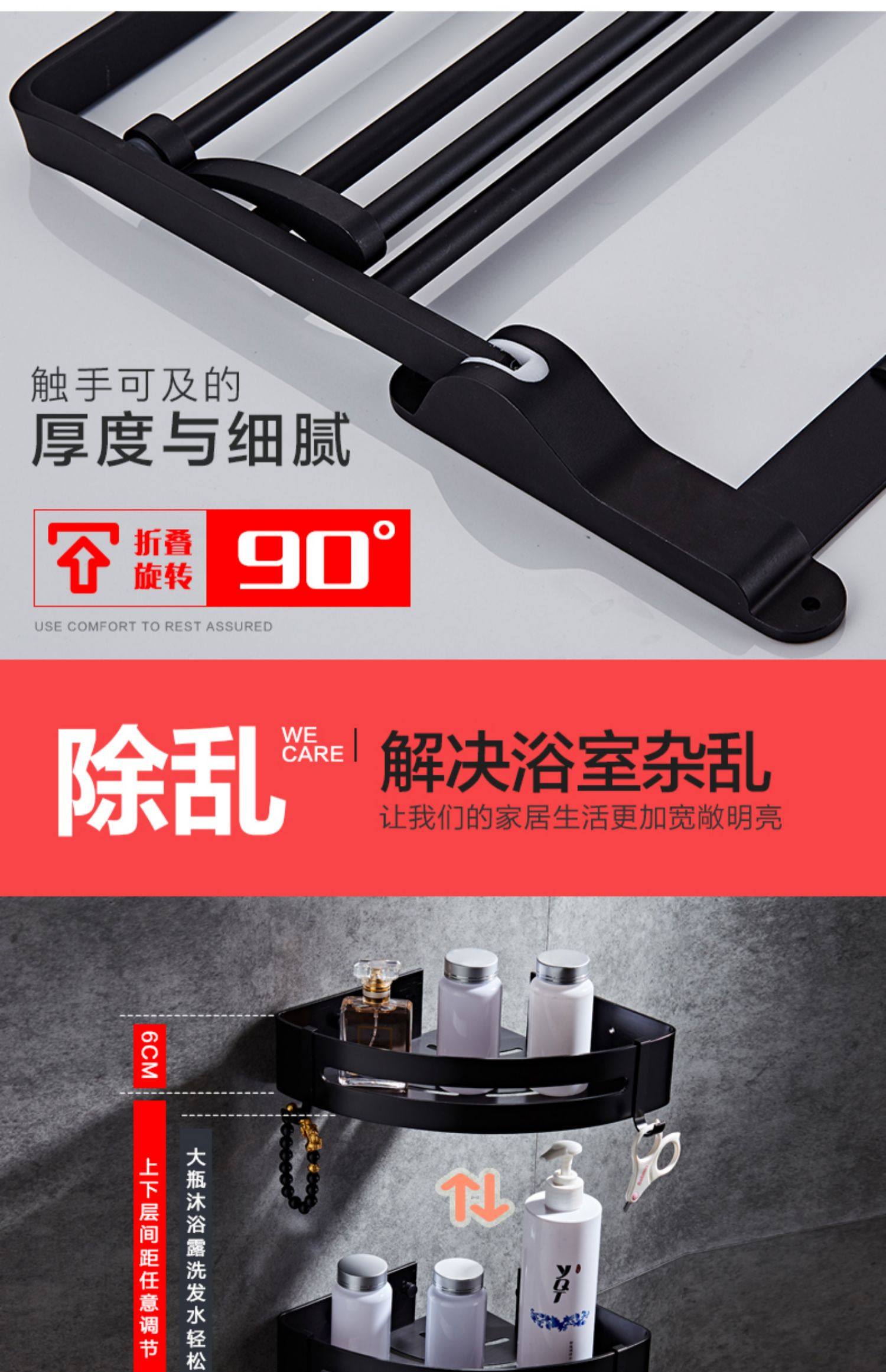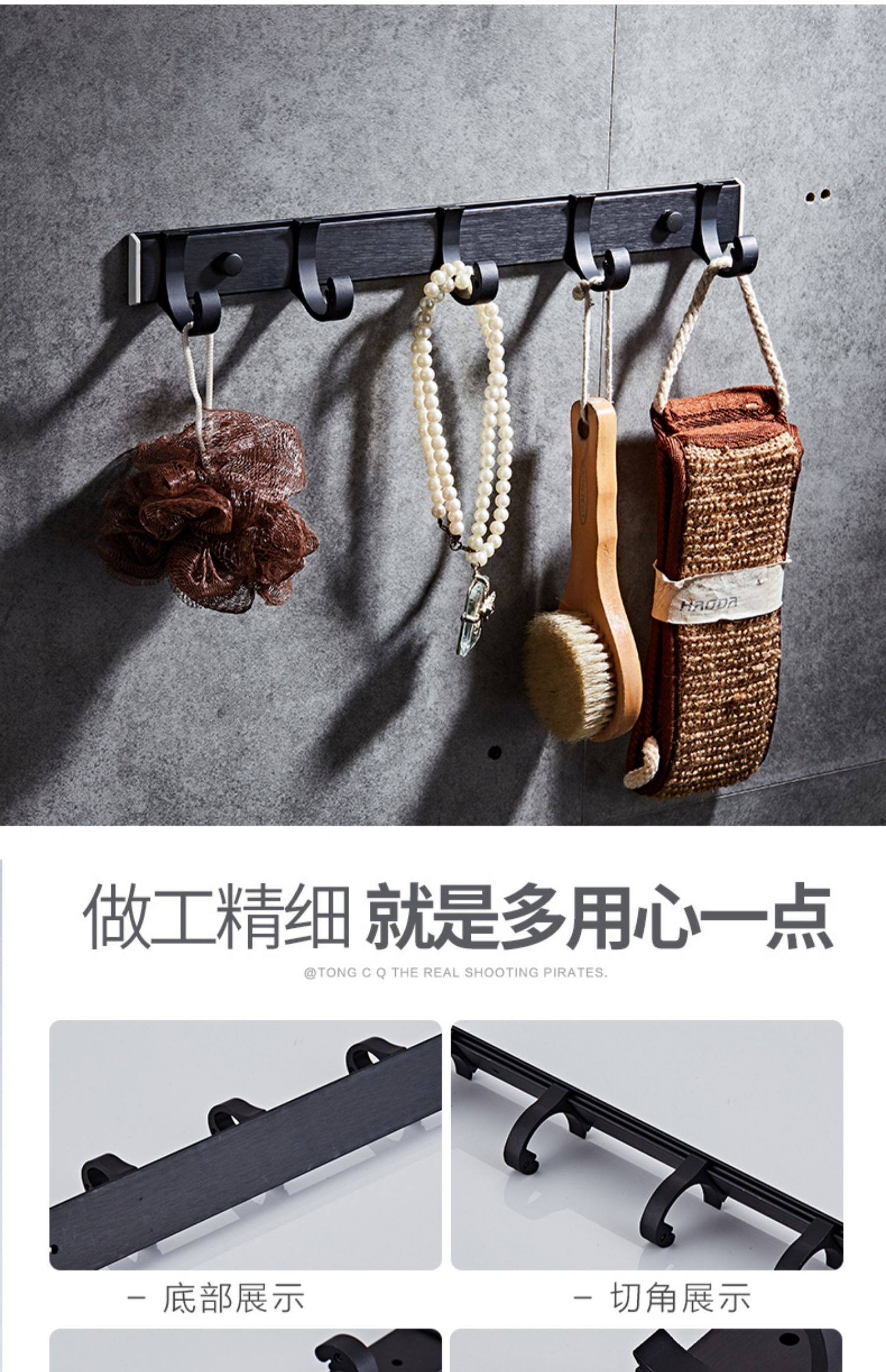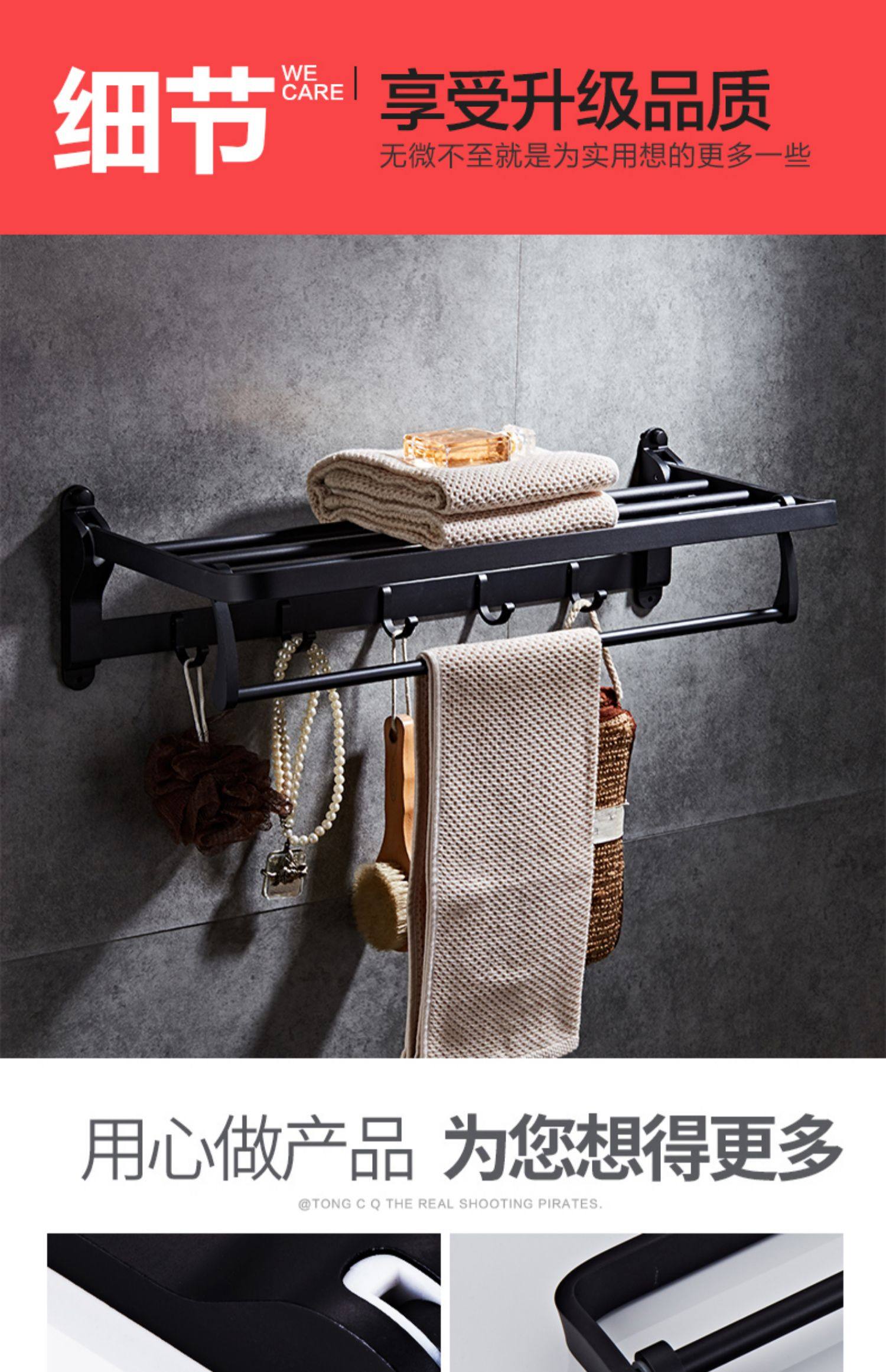 【免打孔】黑色太空铝排钩毛巾架置物架