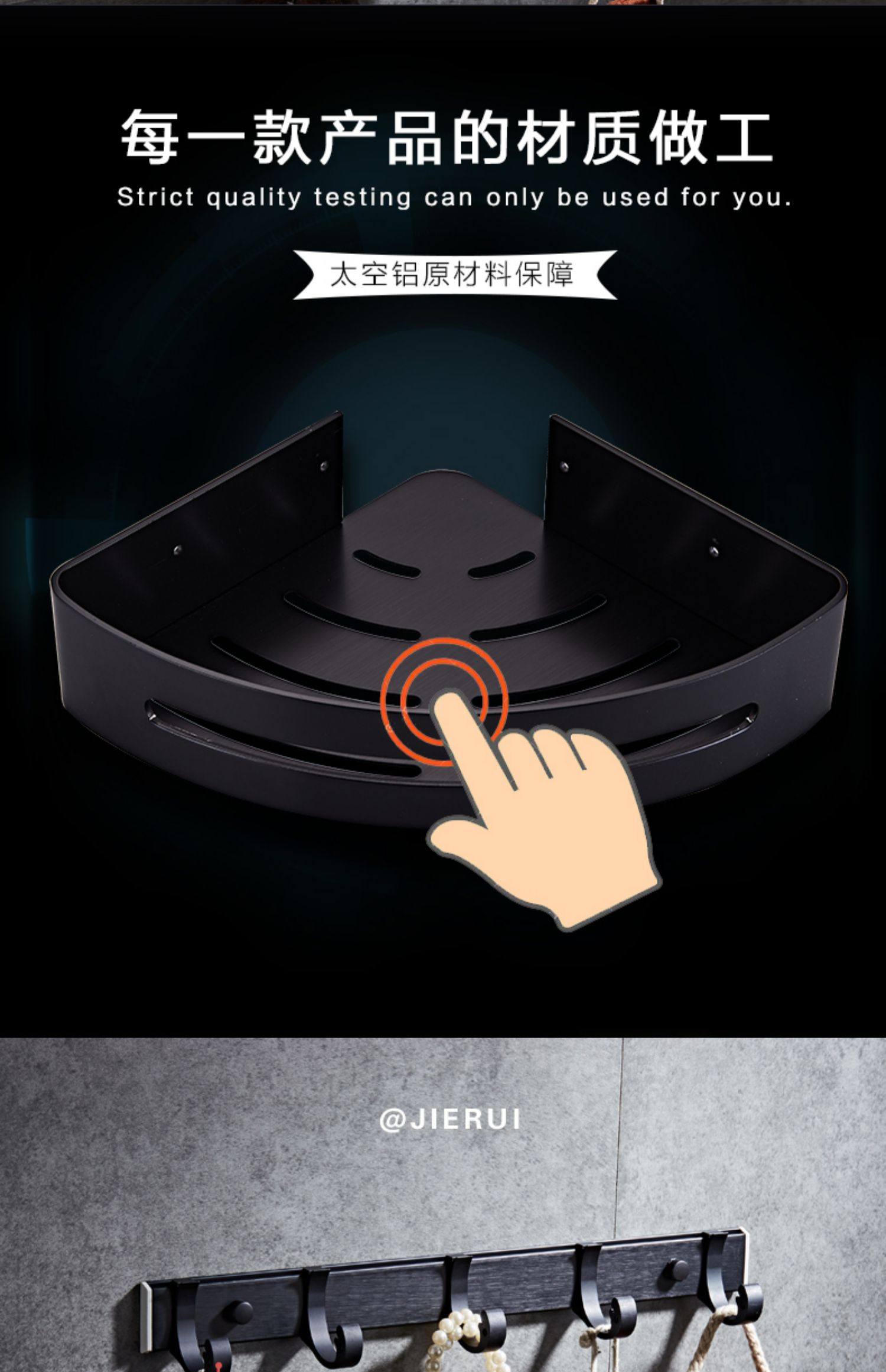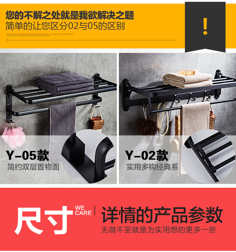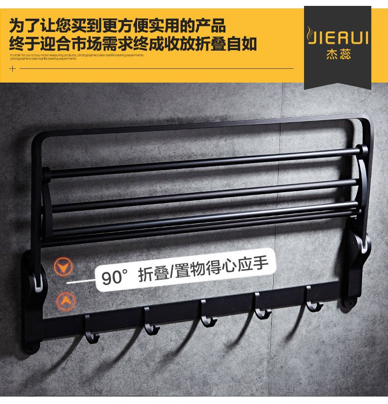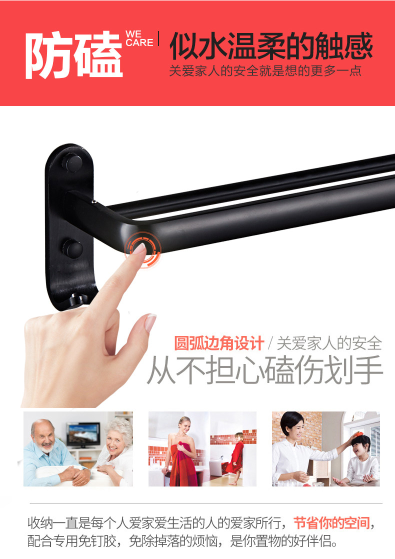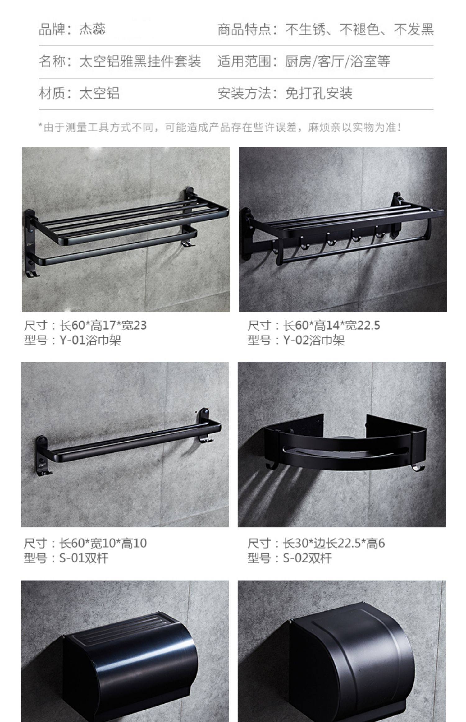 【免打孔】黑色太空铝排钩毛巾架置物架