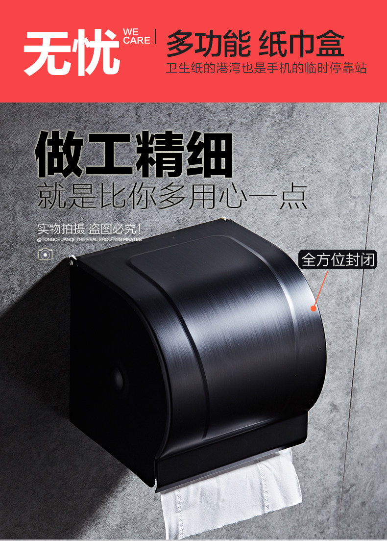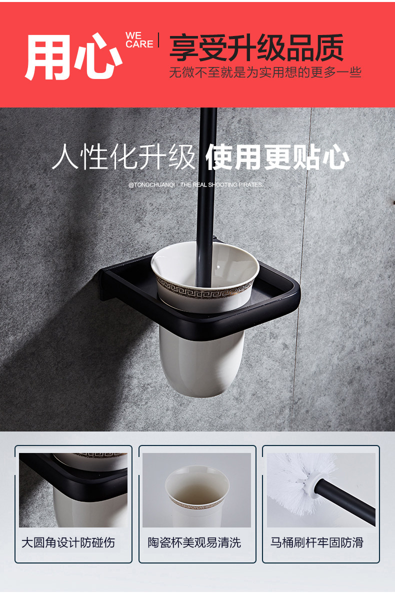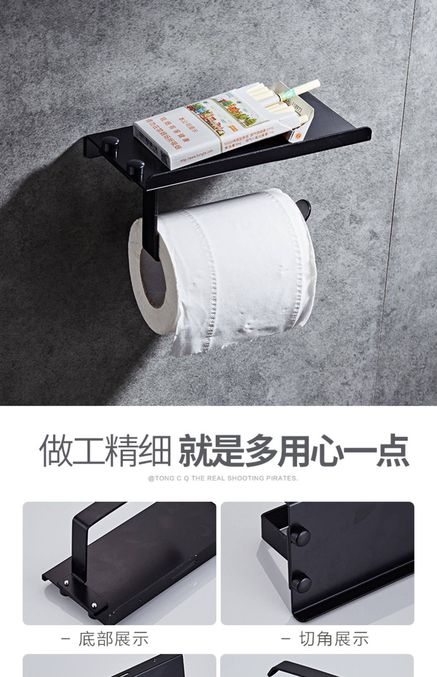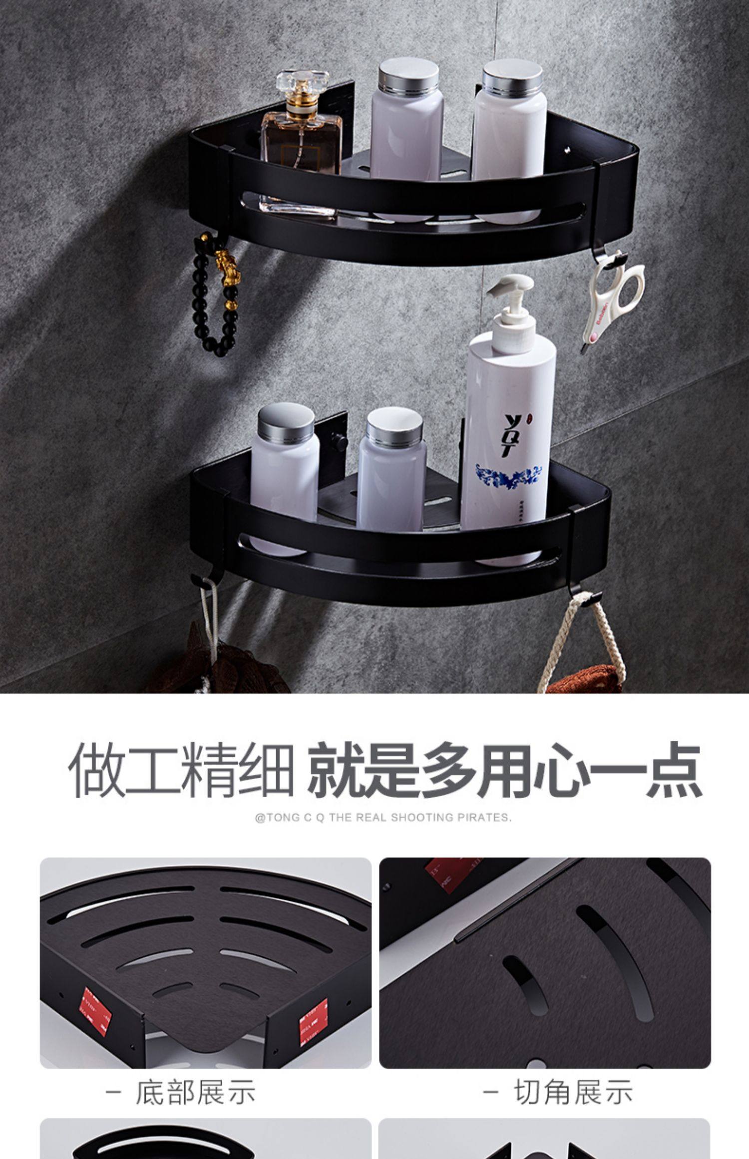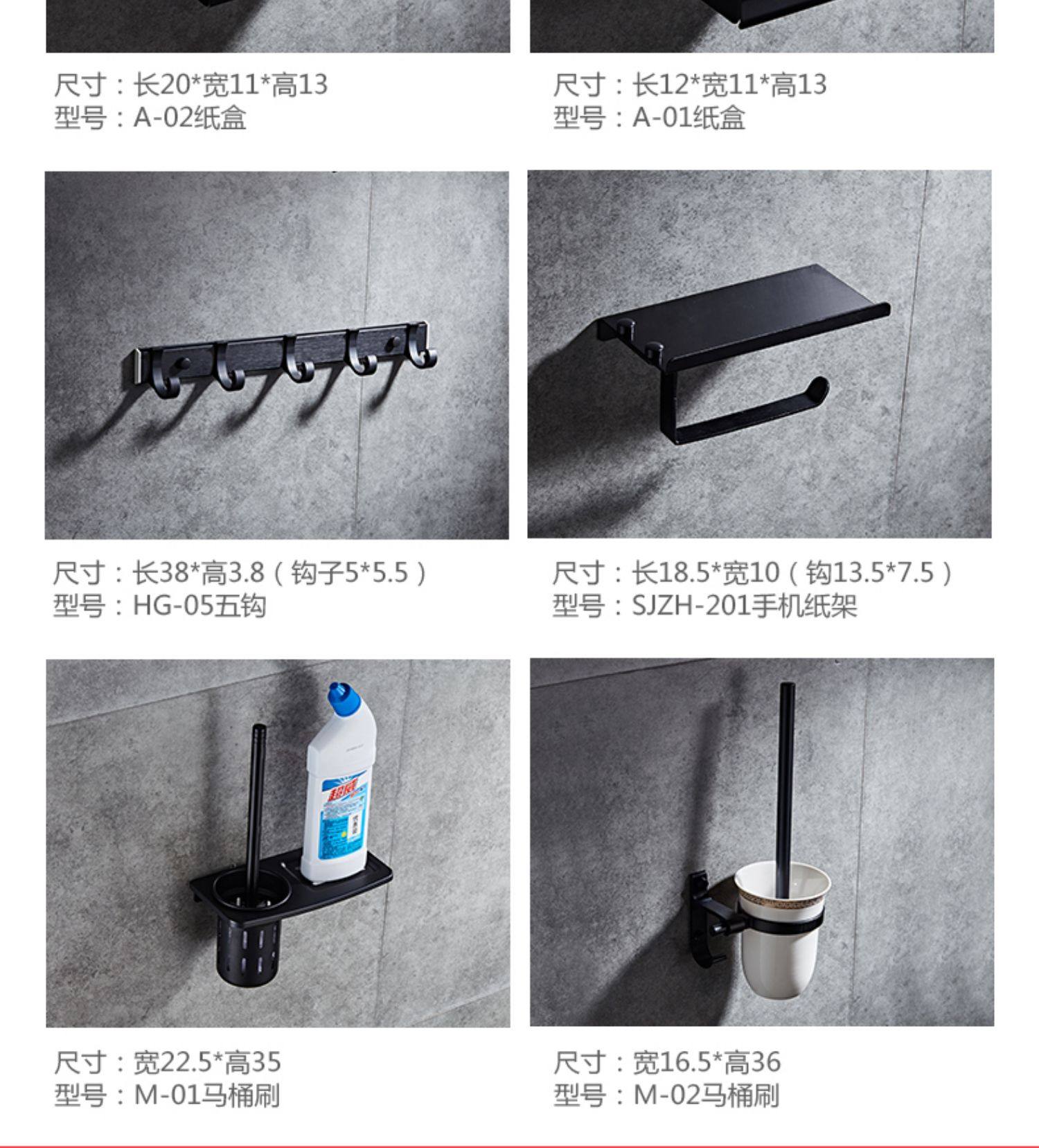 【免打孔】黑色太空铝排钩毛巾架置物架