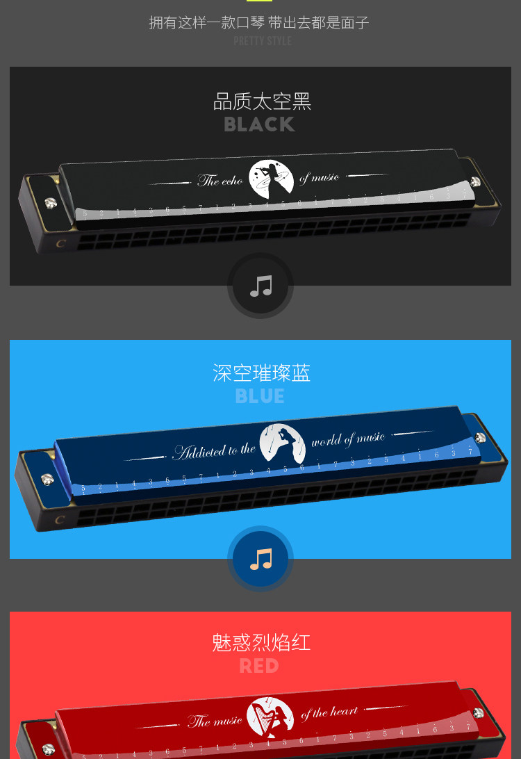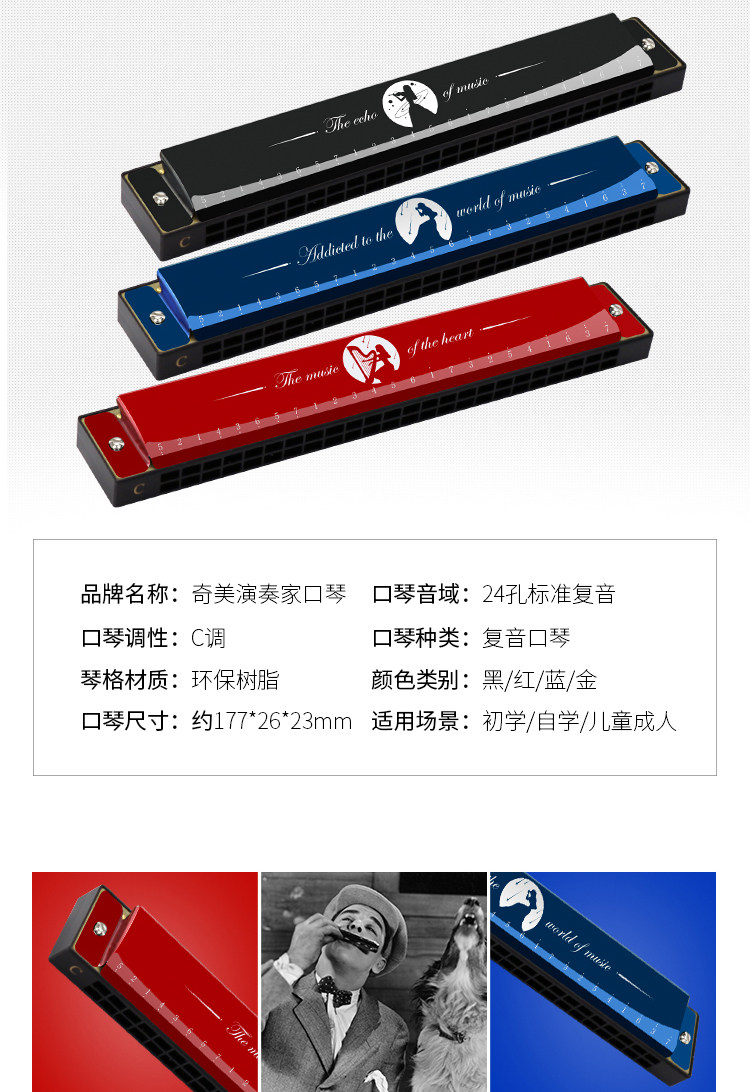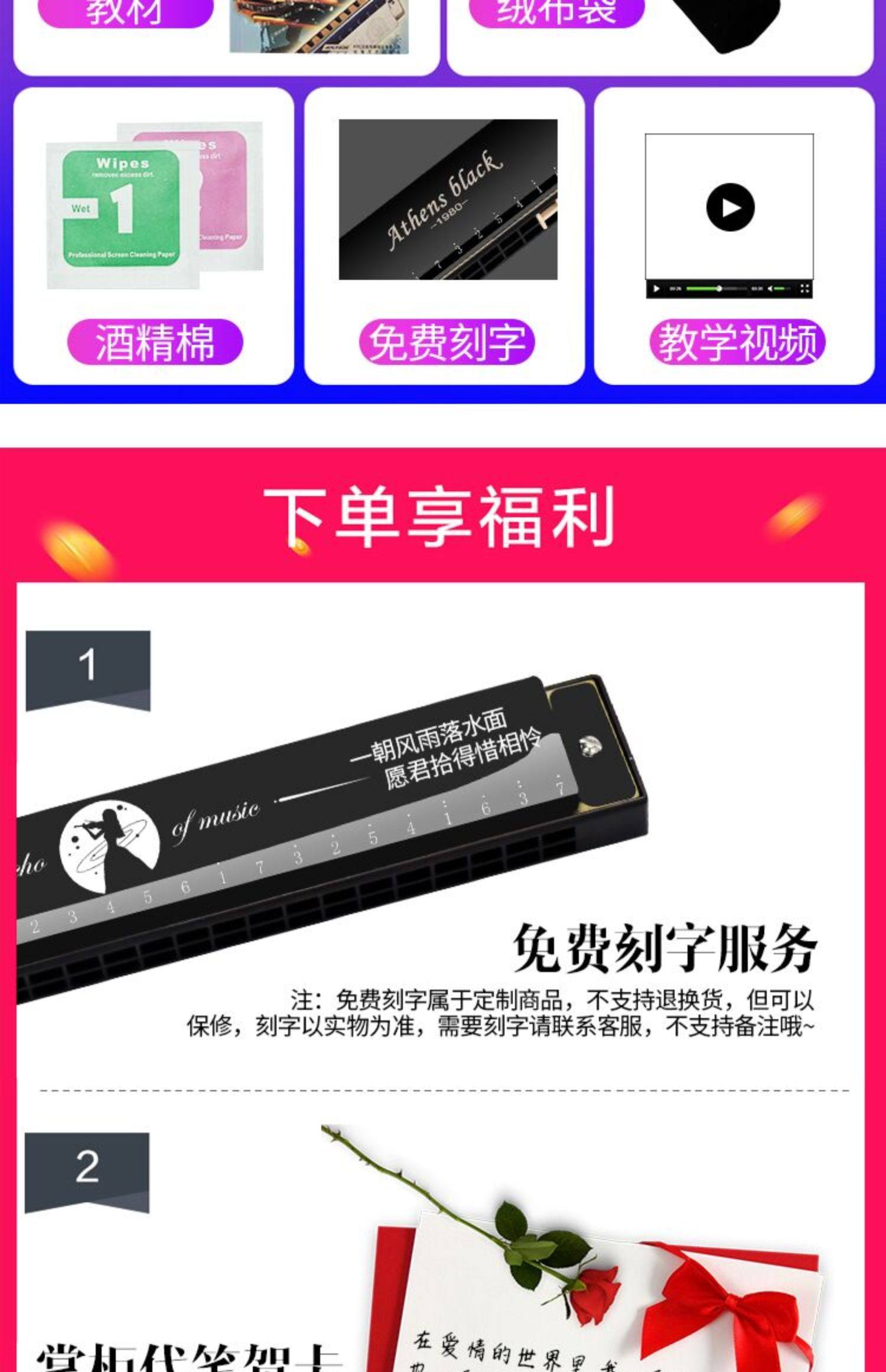 【送自学礼包+加厚绒布袋+小口琴】精选优质材质,音名标识,轻松上手,简单易学,炫彩多色,时尚美观,24孔复设计,有效控制吹吸气流,让声质更为饱满,自己吹出最悦耳的声音【正品保证】