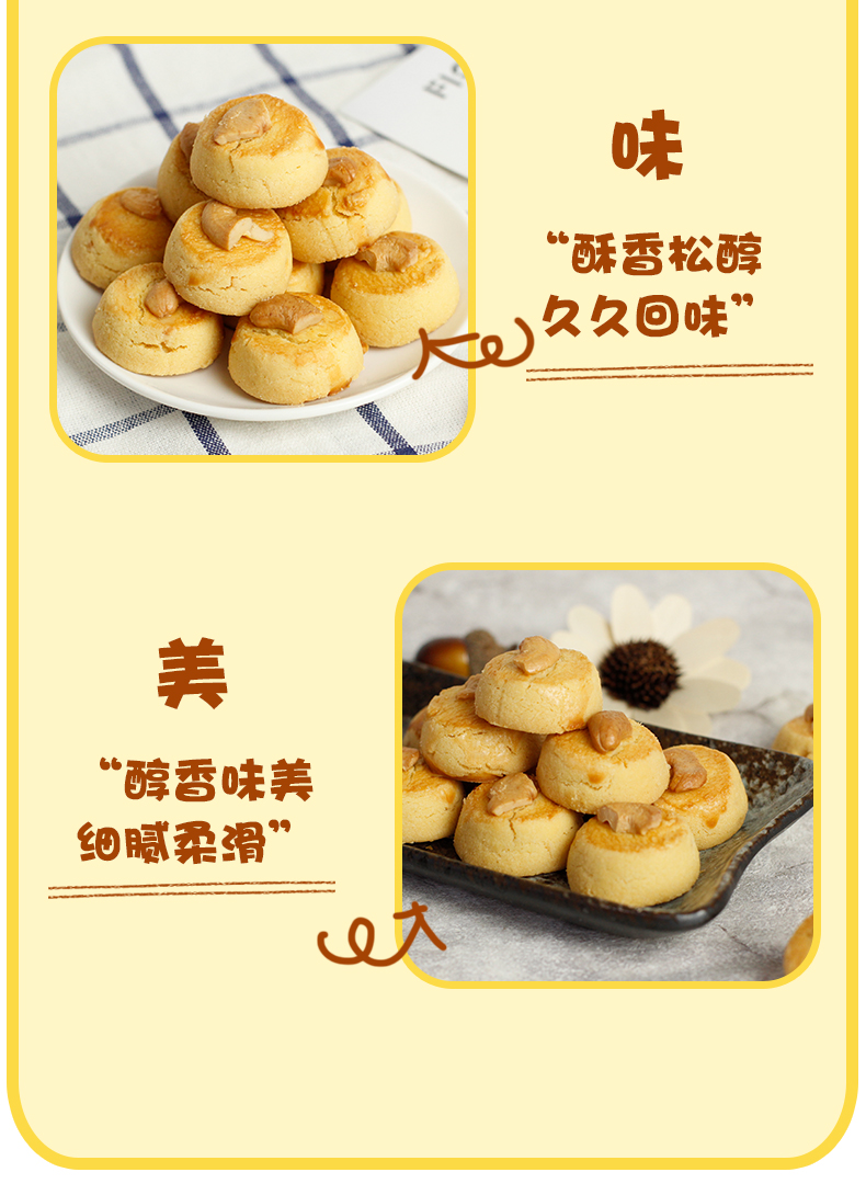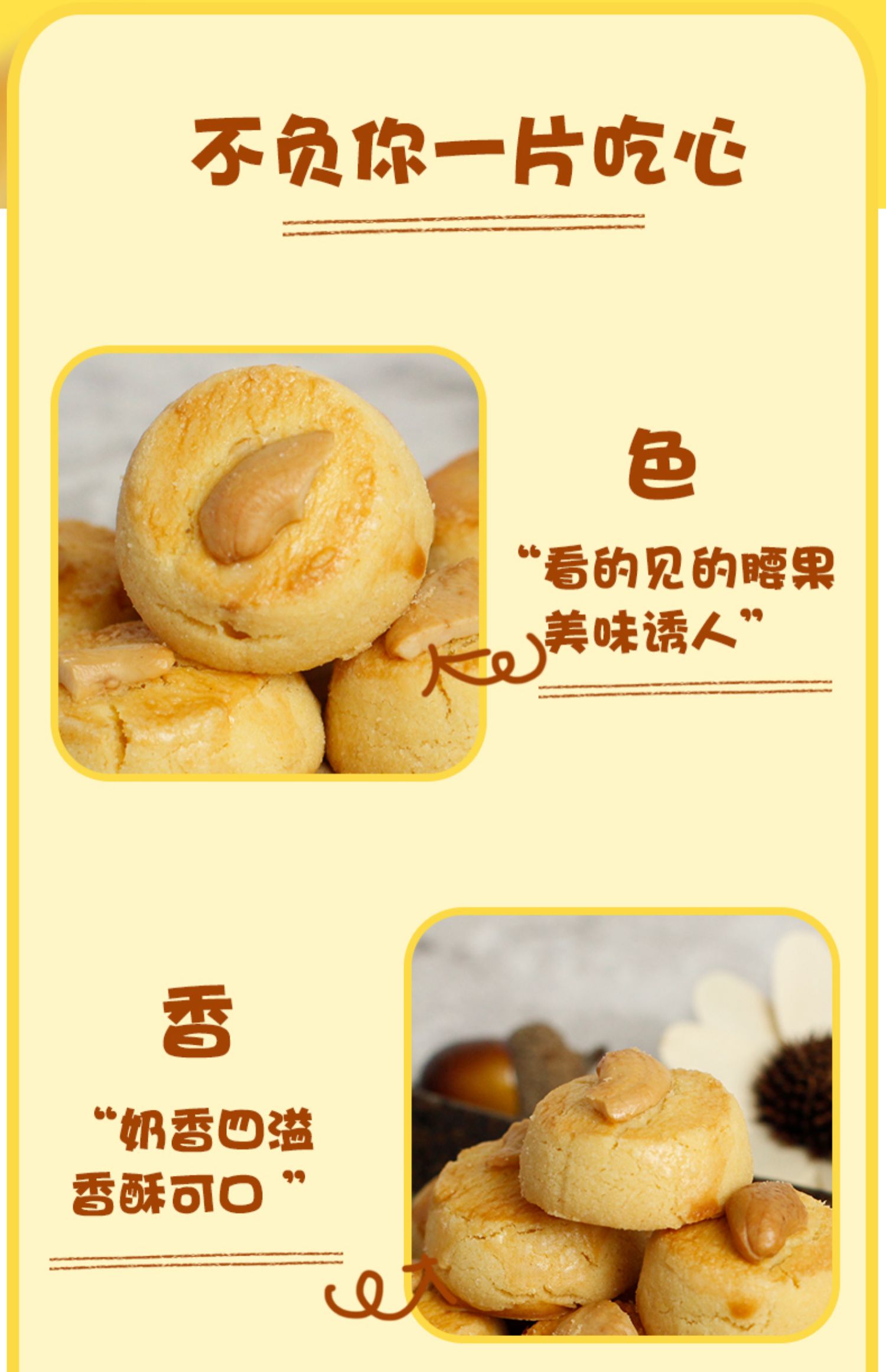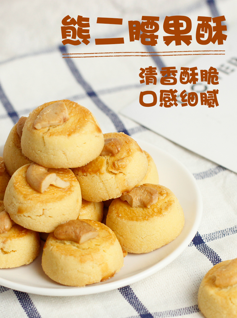 【拍一件8.9拍2件!2件仅需14.9更划算】美味来自原料的苛刻,熊二腰果酥,清香酥脆,口感细腻,采用优质原材料,匠心烘焙,不负您的一片痴心,美食美味时刻相伴~