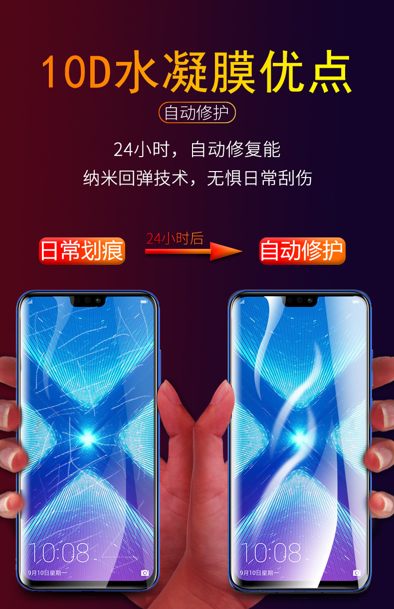 【送贴膜神器+后模】韩国进口10D水凝冻膜,24小时,自动修复刮痕,纳米回弹技术,无惧刮伤!抗蓝光,保护眼睛,无白边,无气泡,无需喷水!还原裸机手感!!