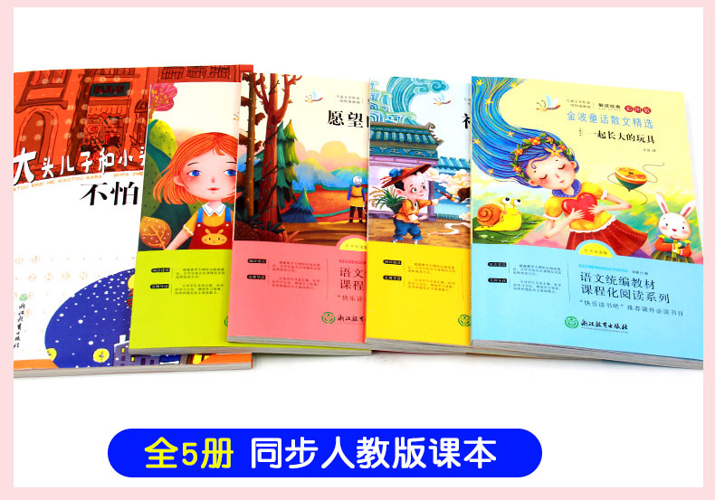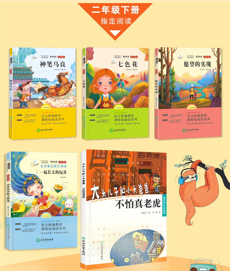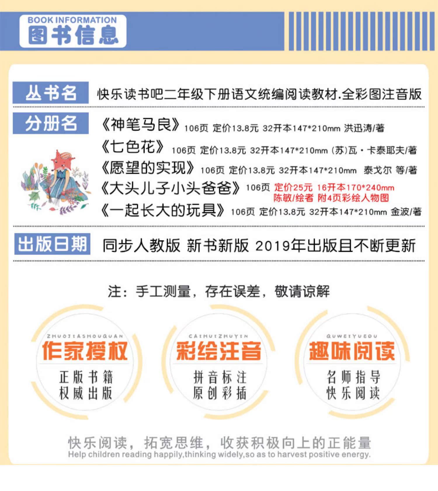 快乐读书吧二年级下,全套五册,神笔马良,七色花,愿望的实现,一起长大的玩具,大头儿子小头爸爸