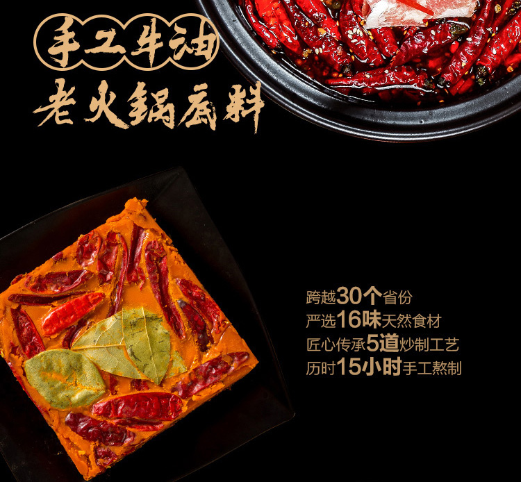 【第二份减6元】中国驰名品牌,全能辣妈叶一茜代言,精心甄选,上乘品质,正宗牛油老火锅料,手工全型料,有滋有味,在家坐享火锅店的味道,多可供8人食用!【赠运费险】