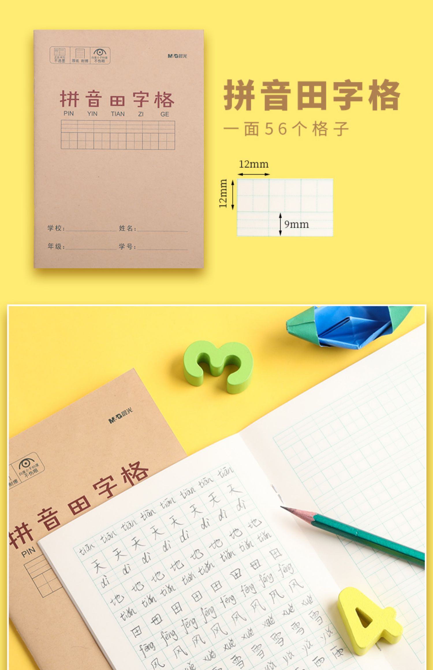 【超市是一块钱一本,我们才三毛钱一本】春季开学必备!护眼加厚田字本,写字擦拭不易烂,两面都能写!买给孩子上幼儿园、上小学练字用!【正品保证,赠运费险】