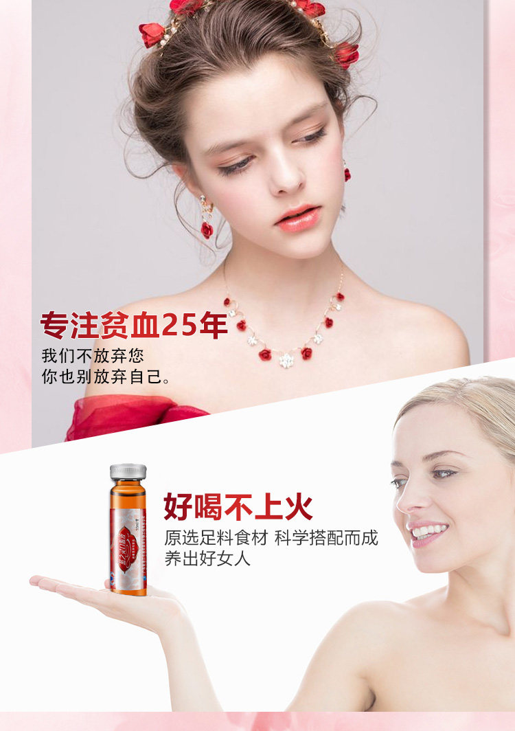 普遍女性气血不足,导致气色差,痛经等~快喝蓝之灵补血补气口服液!专注贫血25年,蓝帽子认证放心喝~科学配比,每天来3瓶,喝出好气色!孕妇也可食用呢!