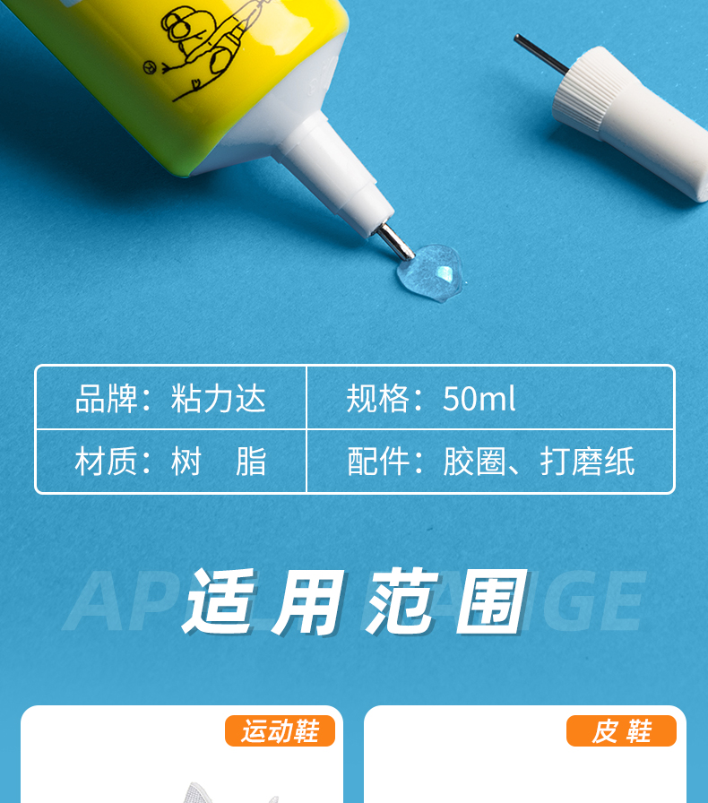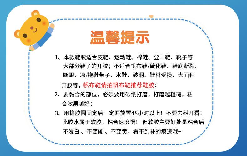 强力补鞋胶,针头出胶,轻松便捷,不发黄,不伤手,不伤鞋,操作简单,适用多种鞋型!赠送工具!