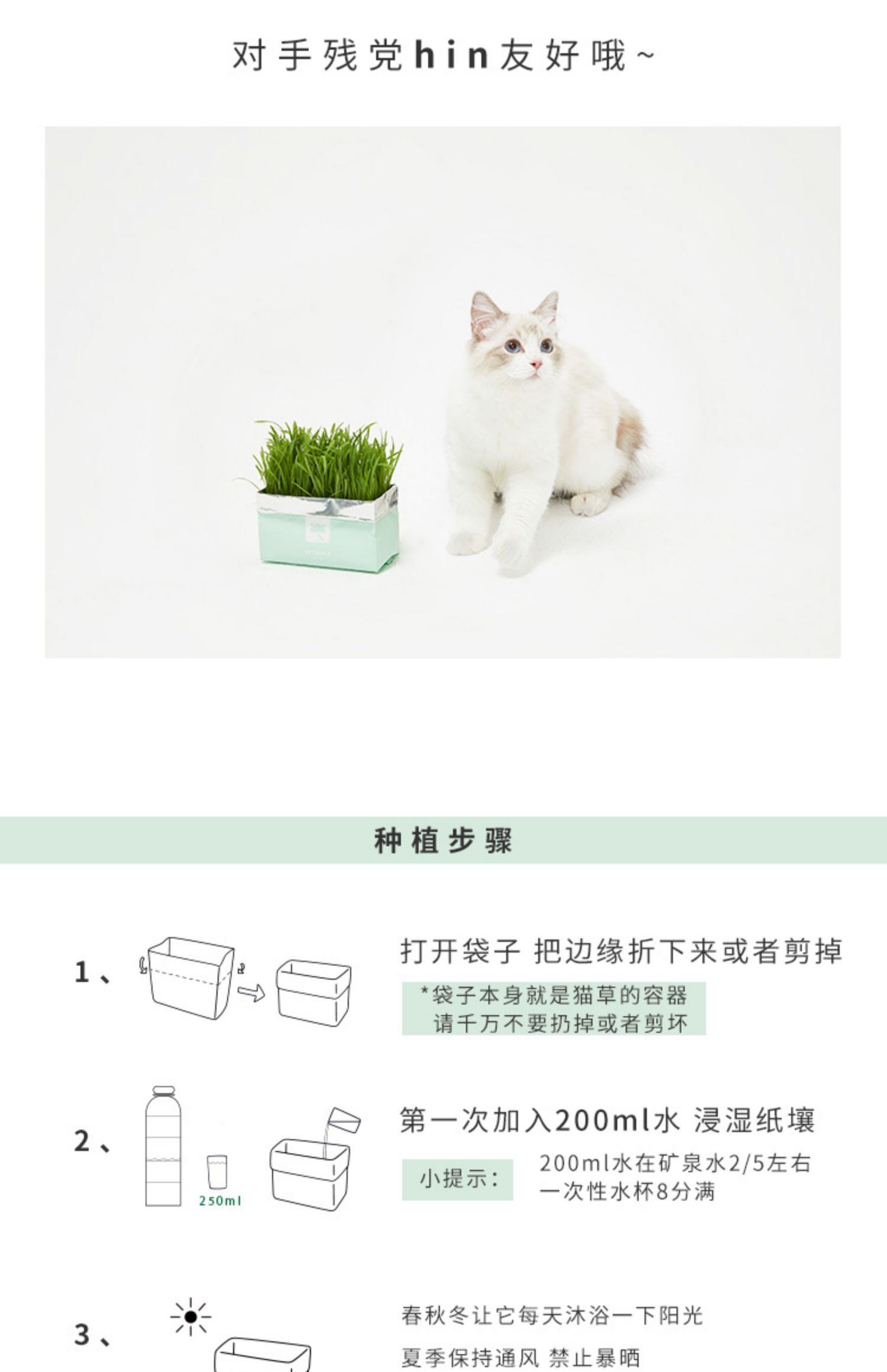 选自澳大利亚进口燕麦种子,一款没有土的网红猫草,防水锡纸包装,营养纸浆代替泥土,适口性更好!