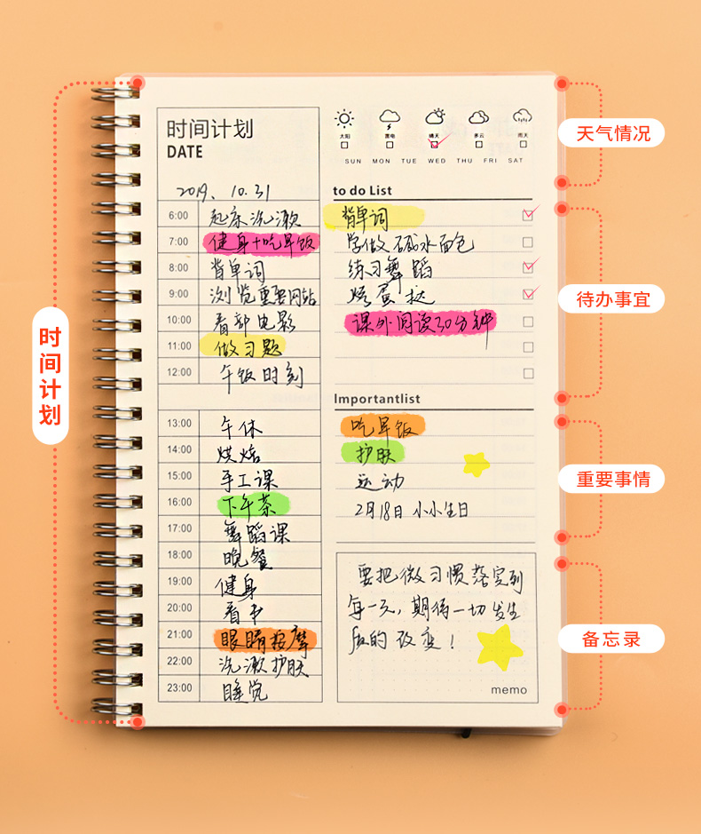 多功能线圈本,防水防尘,双线圈装订不易散页。加厚纸张,不易晕染