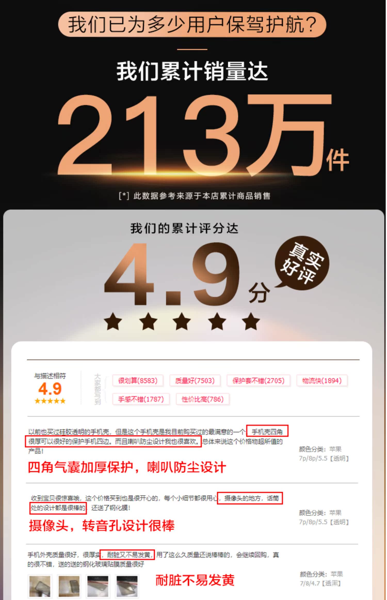累计好评45W+!犹如隐形,轻薄透明柔软,环保材质,无毒无味,高透亮,不易发黄,升级镜头保护圈,一体成型,舒适不刮手!