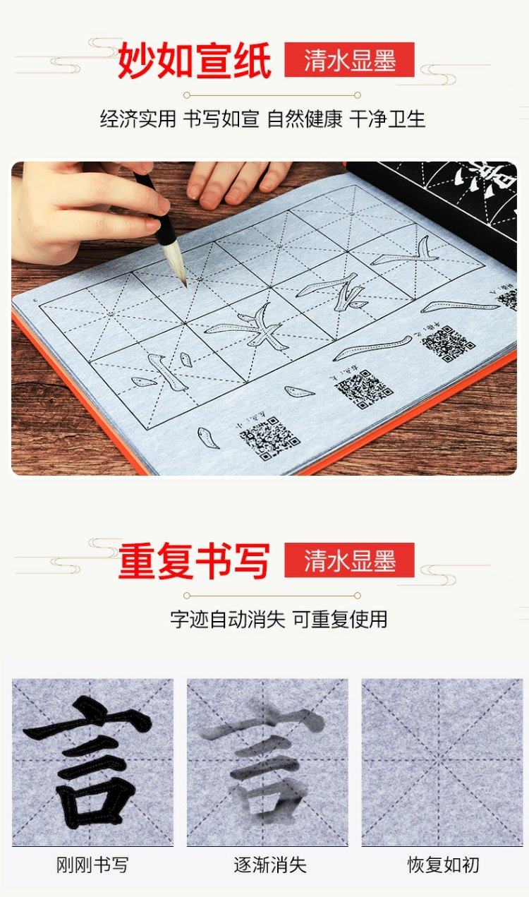 赠120个视频教程,学生开学练字必备!清水显墨,万次环保书写,妙如宣纸,用我的笔墨,书写你的故事~