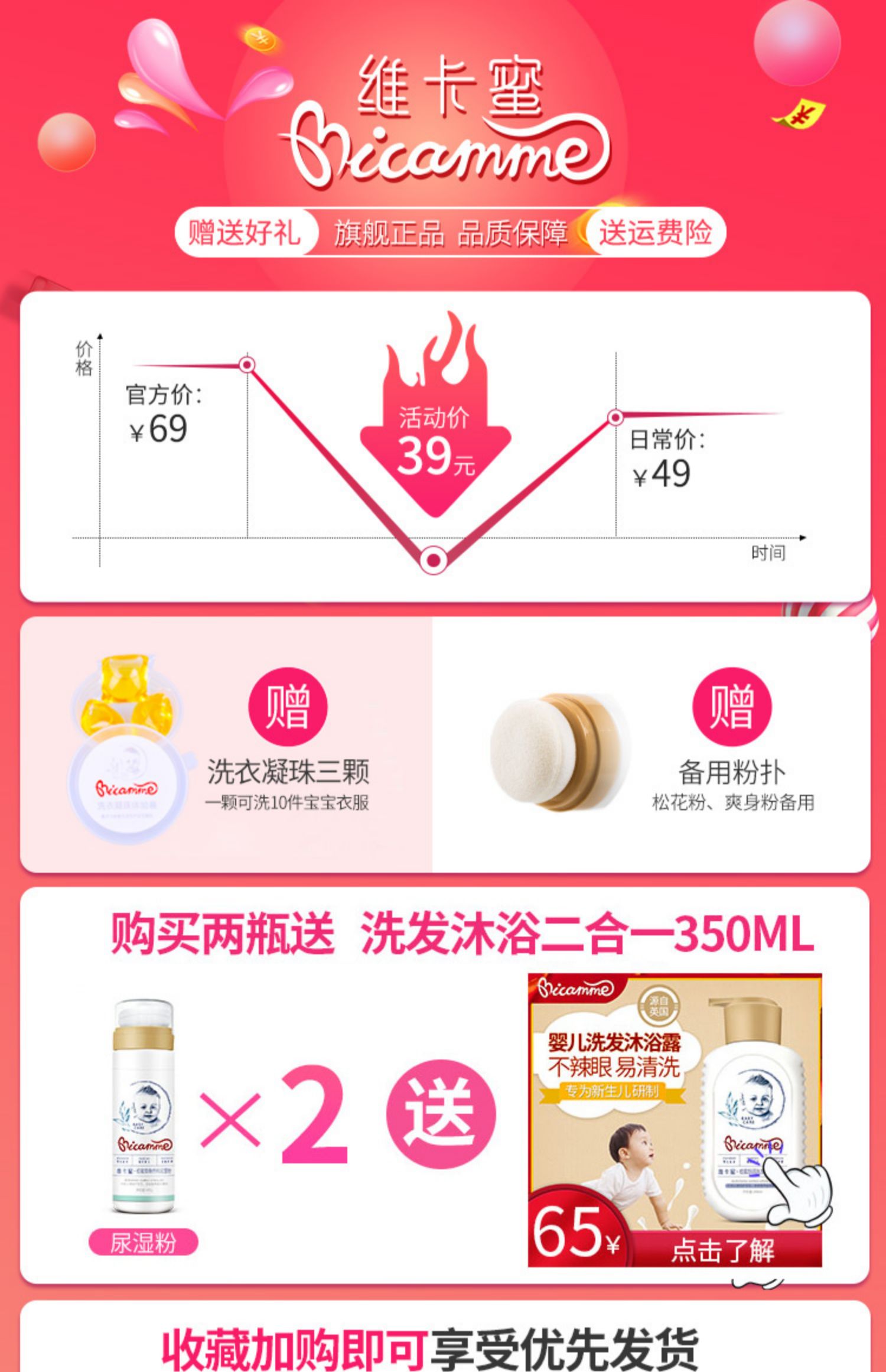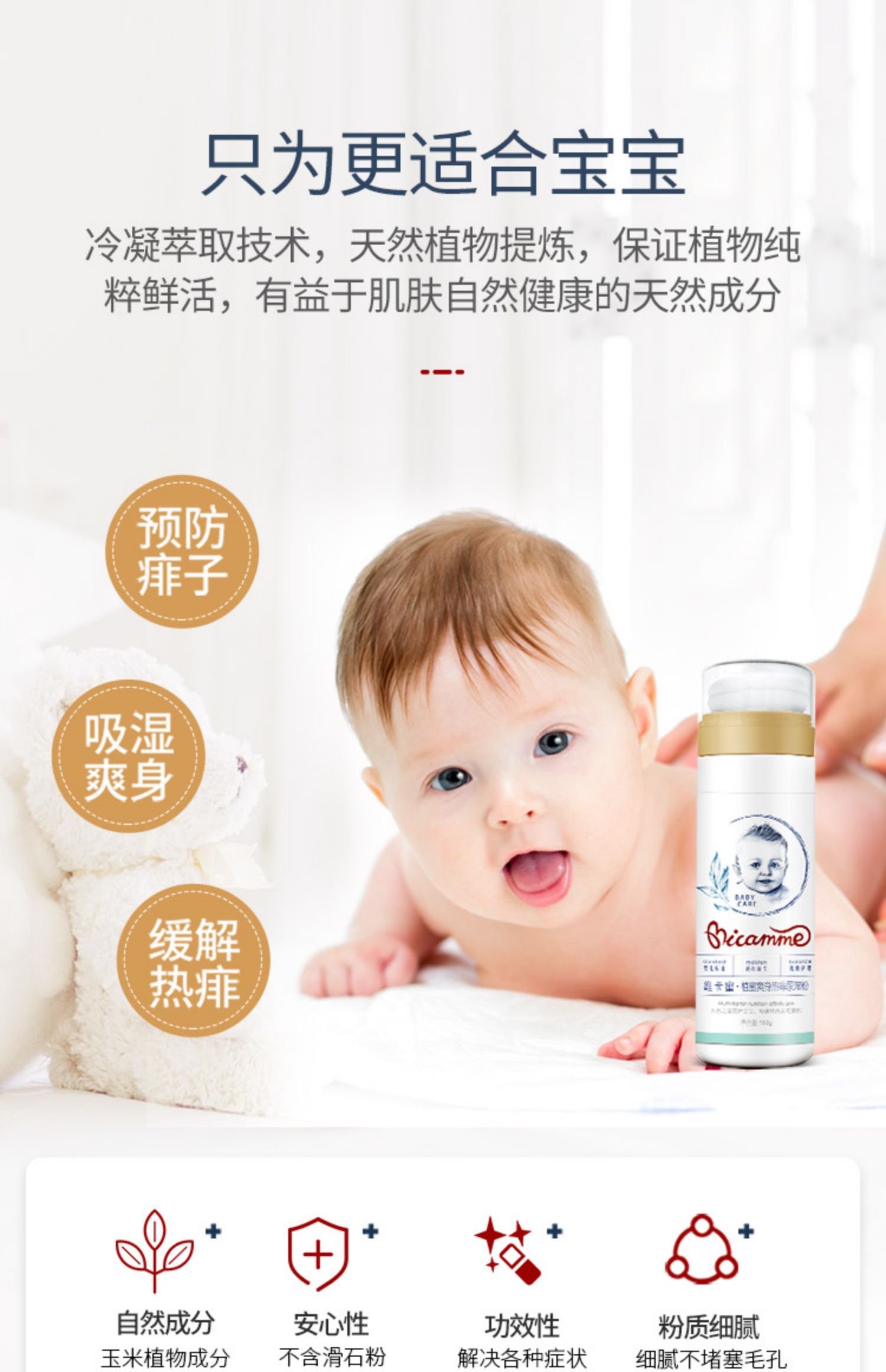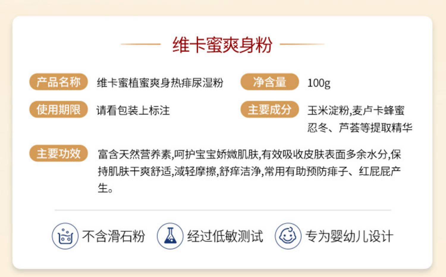 维卡蜜爽身粉婴儿专用儿童痱子粉新生宝宝热痱粉婴幼儿玉米粉粉扑 天然玉米粉,不含滑石粉,安全健康,
