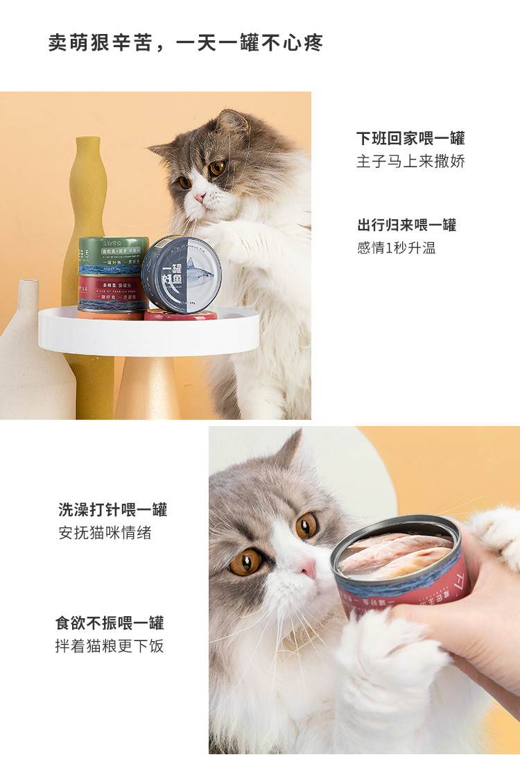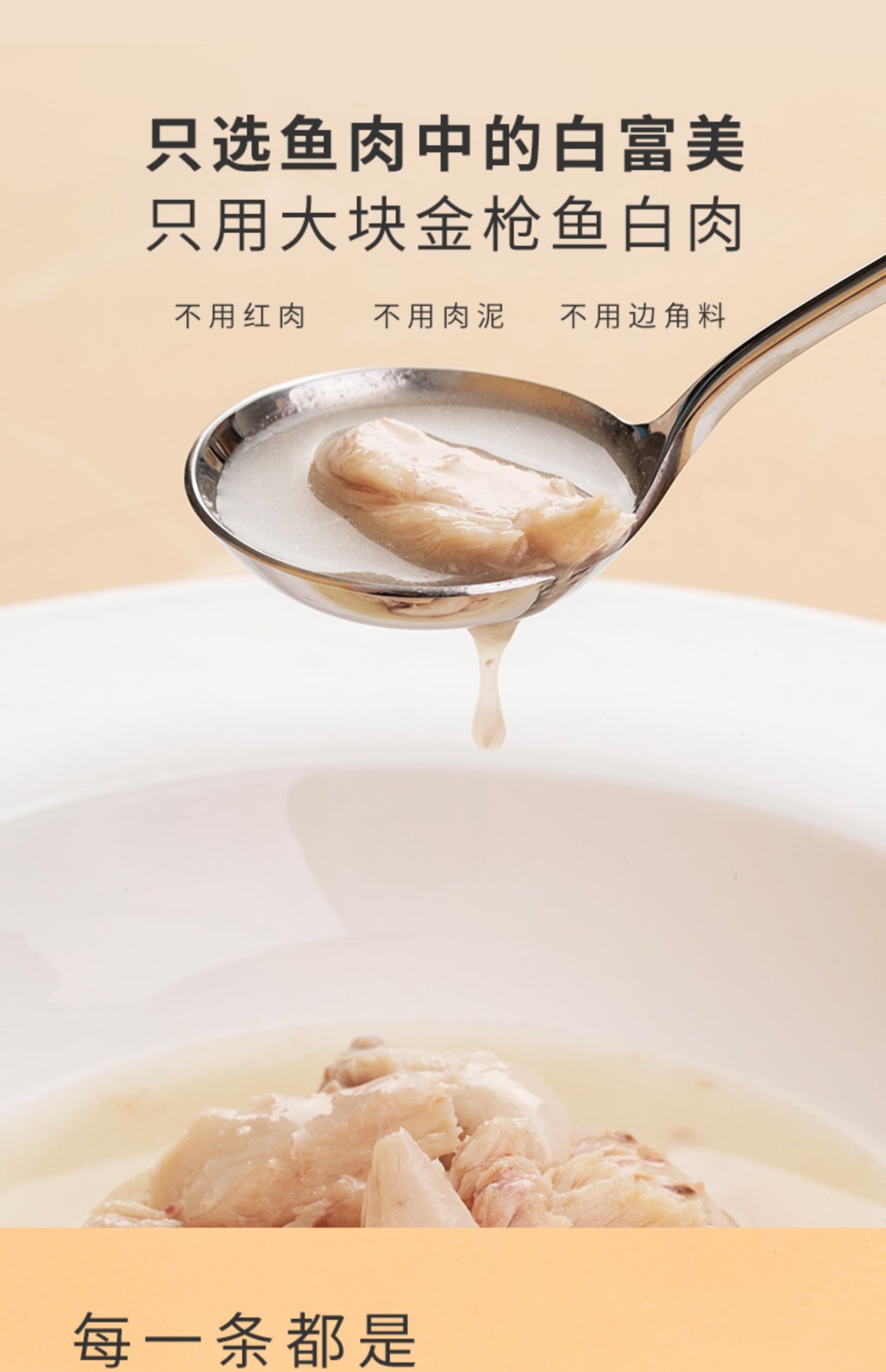 【每罐附赠保鲜盖+勺子】只选用大块金枪鱼白肉身,0诱食剂0色素0工业凝胶,浓汤加倍肉量不减,好吃又补水,猫咪爱吃身体棒棒~