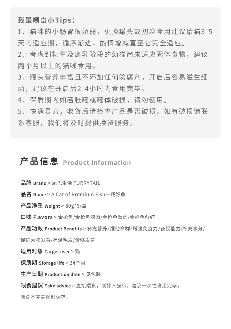 尾巴生活一罐好鱼白肉猫罐头80g*6罐