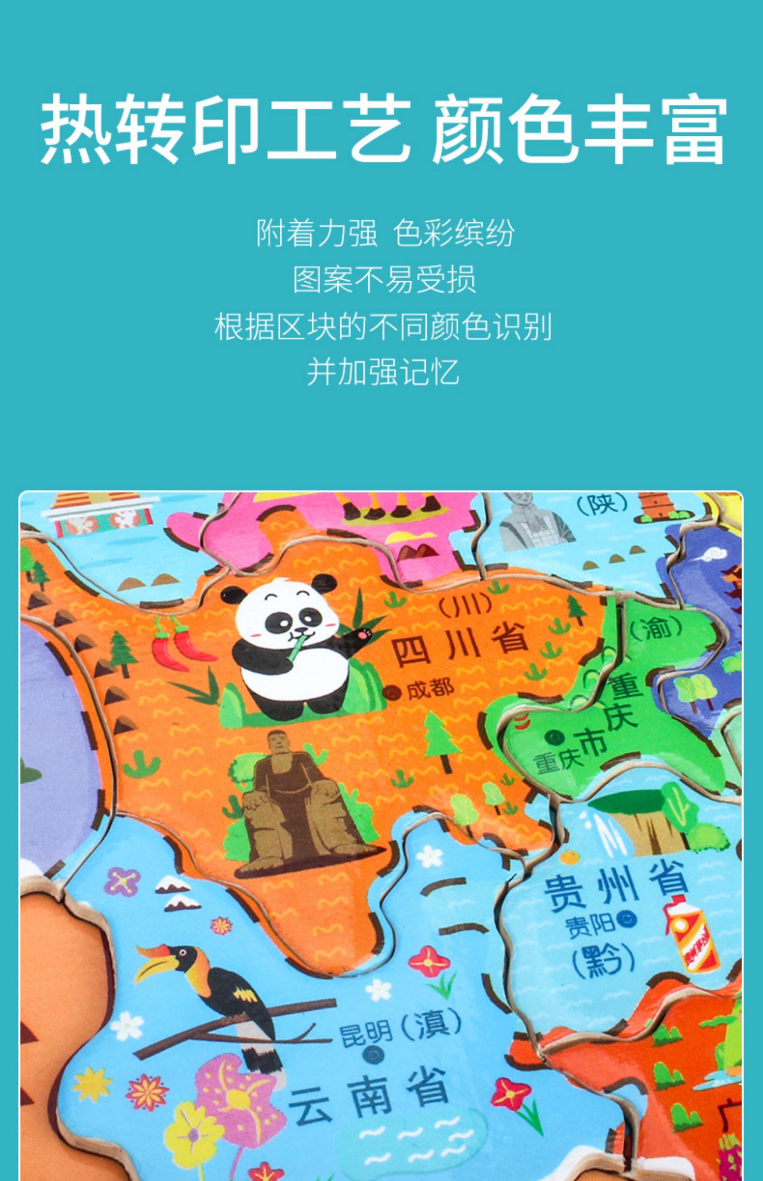 超值!【中国地图拼图】线下一块地图拼图就要十几元!寓教于乐,能玩还能学习知识,做个聪明的宝宝~拼色设计,丰富视觉效果,培养宝宝对地理的兴趣,体验亲子的乐趣【赠运费险】