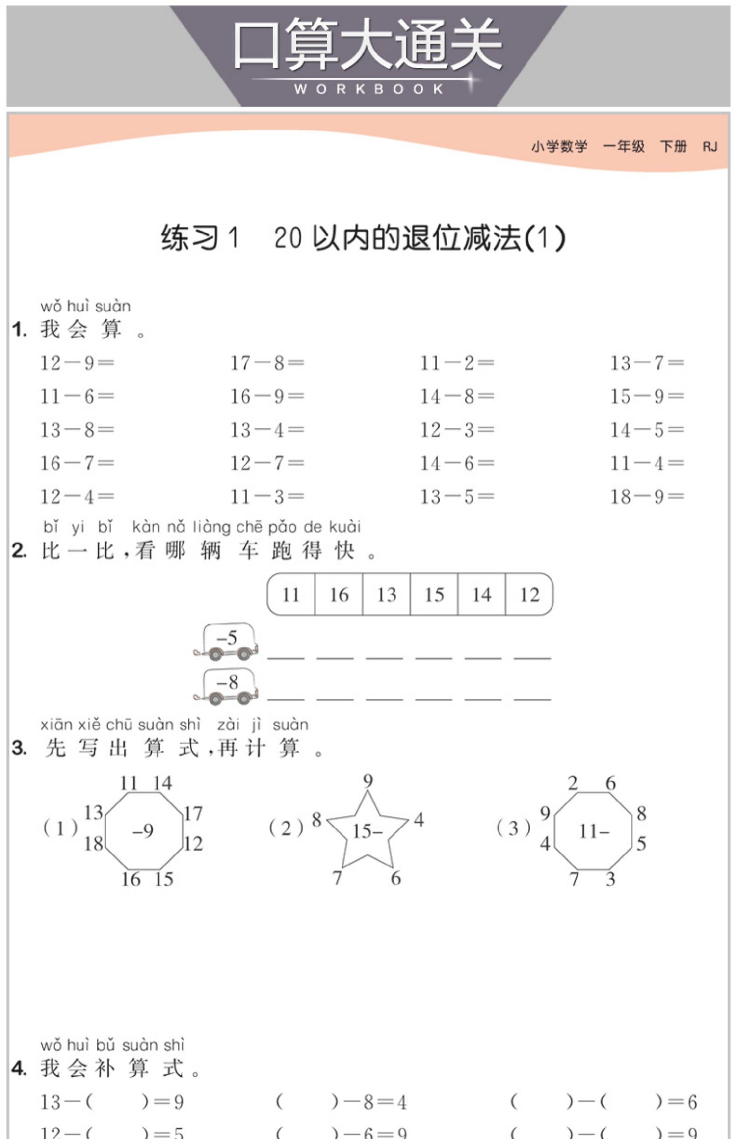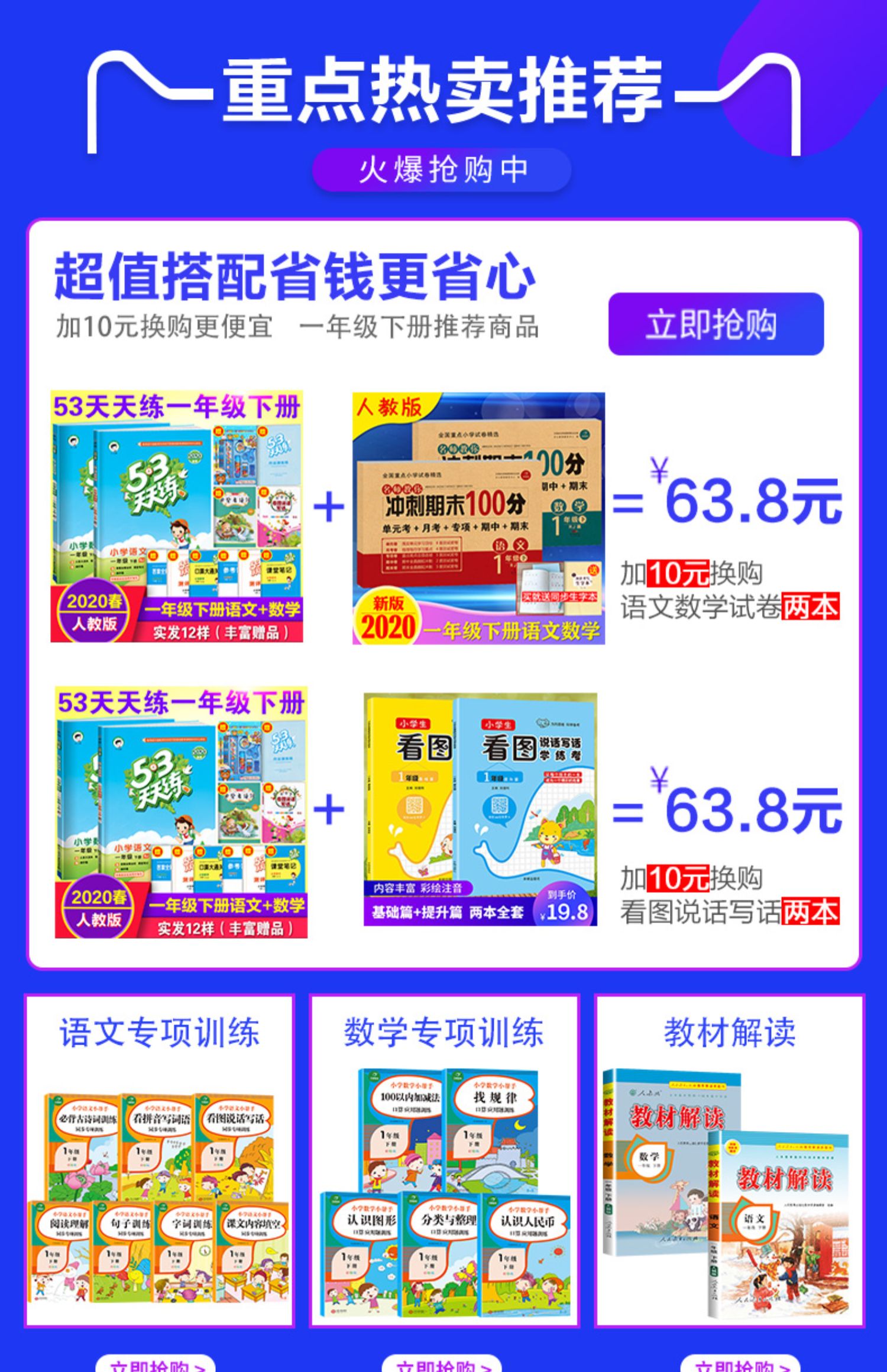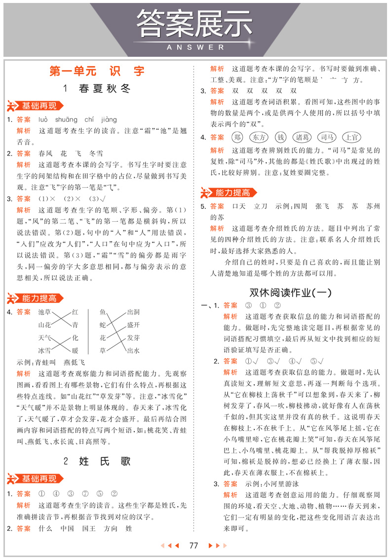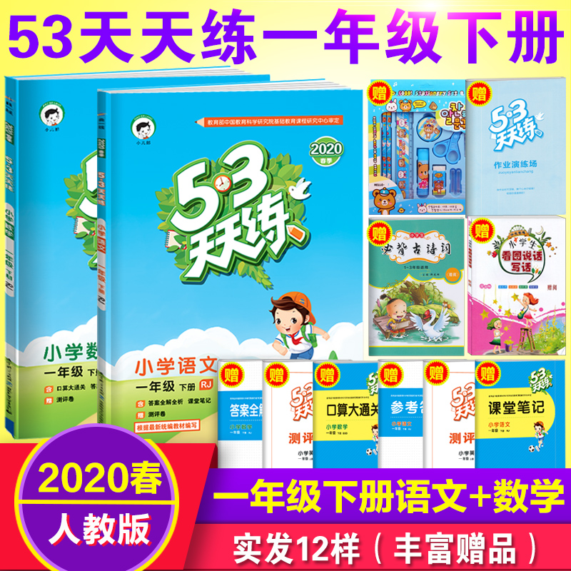 实发12样 53天天练一年级下册语+数