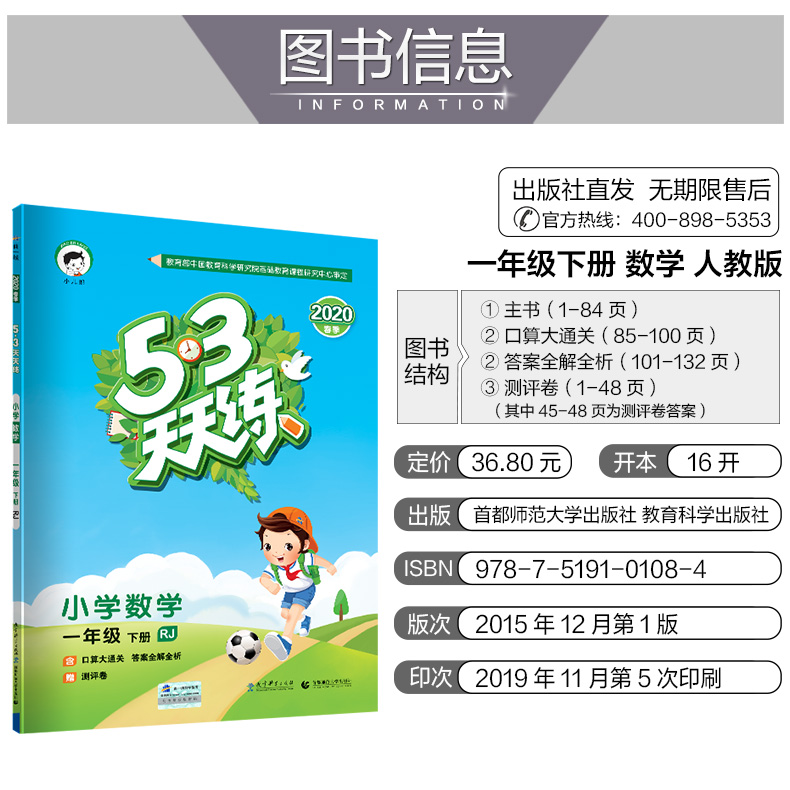 【赠文件十件套,实发11本书】小学一年级下册53天天练,语文+数学,掌握知识技能,培养学生思考能力,增强应用意识,发展创新,掌握学习方法!让您的孩子学得比别人快一步,学习更轻松。