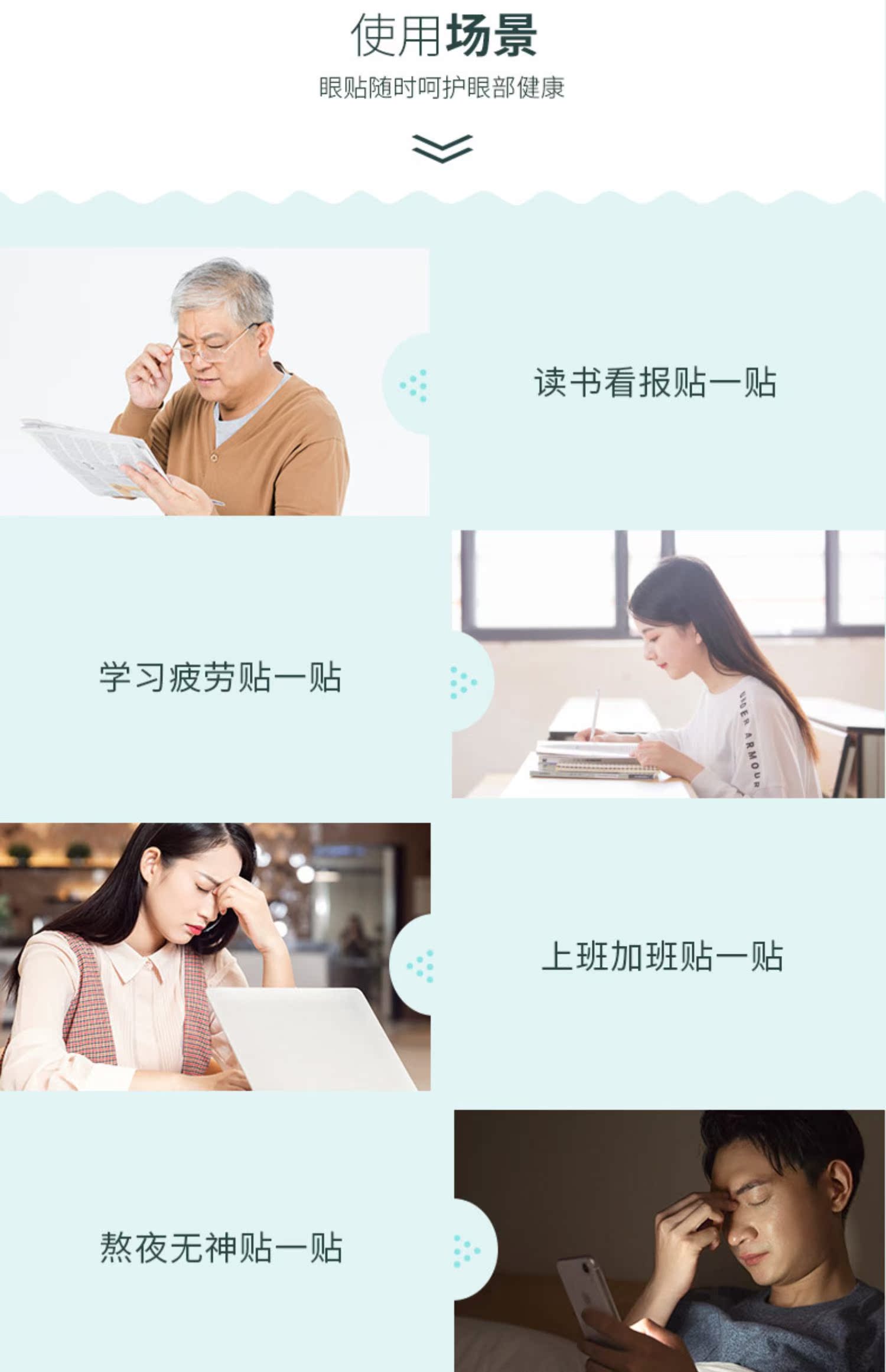 舒缓眼干涩,缓解疲劳,淡化黑眼圈,防近视护眼贴,给予眼部肌肤冷敷治疗按摩,定只为眼睛更舒服,给眼部做一个简单的spa,爱生活,爱自己,给你全新的舒适体验!
