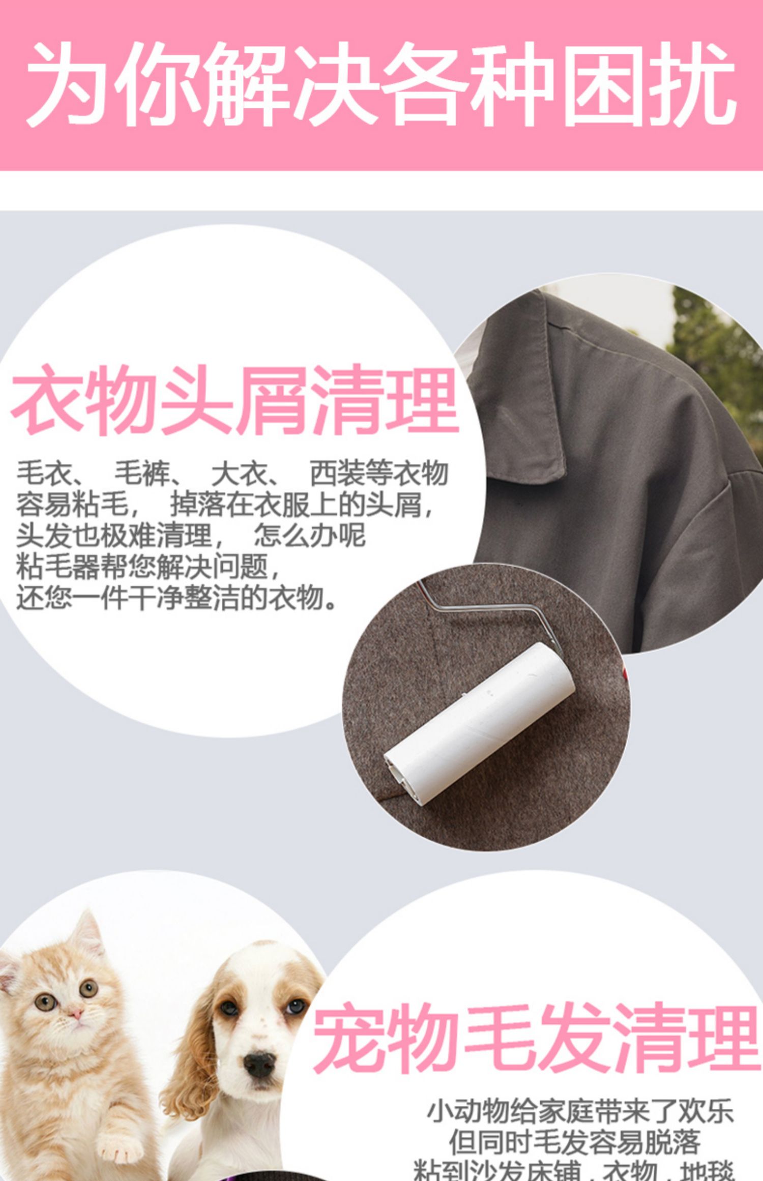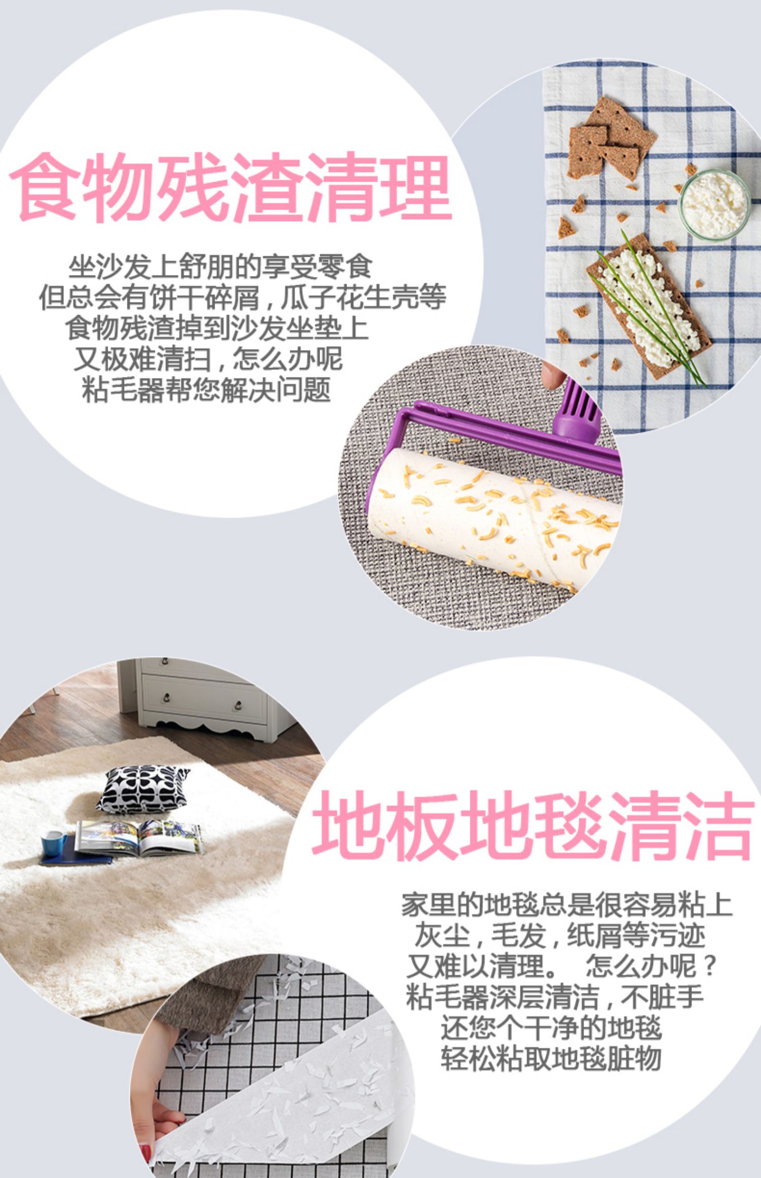 【抖音同款,粘毛神器!斜撕设计超方便!】强力粘性一粘即掉,可粘纸屑、毛发、食物残渣等,环保材质安全无毒,每卷60撕,一滚一撕烦恼尘屑去无踪!居家必备