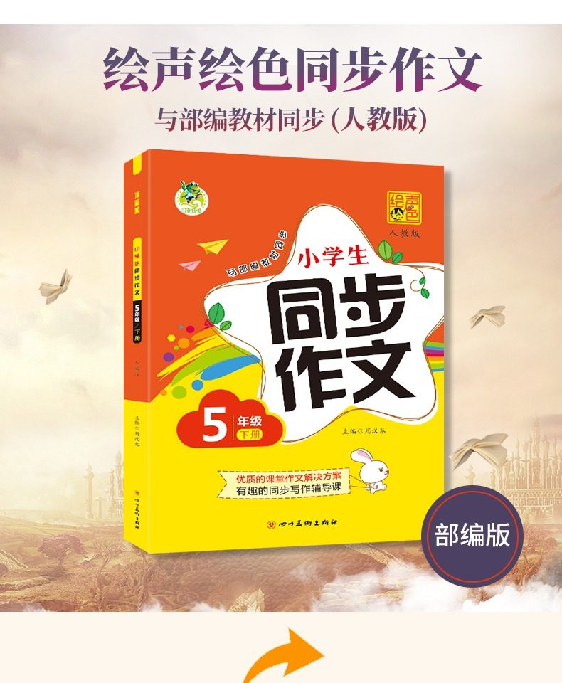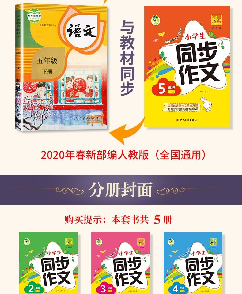 【送作文本】五年级优秀作文书,与部编教材同步,全国通用,小学生作文大全,优秀作文,好词好句好段,不仅有范文,还有思路和方法,引用好词好句,插画精美,手把手教写作,让孩子对写作文感兴趣!