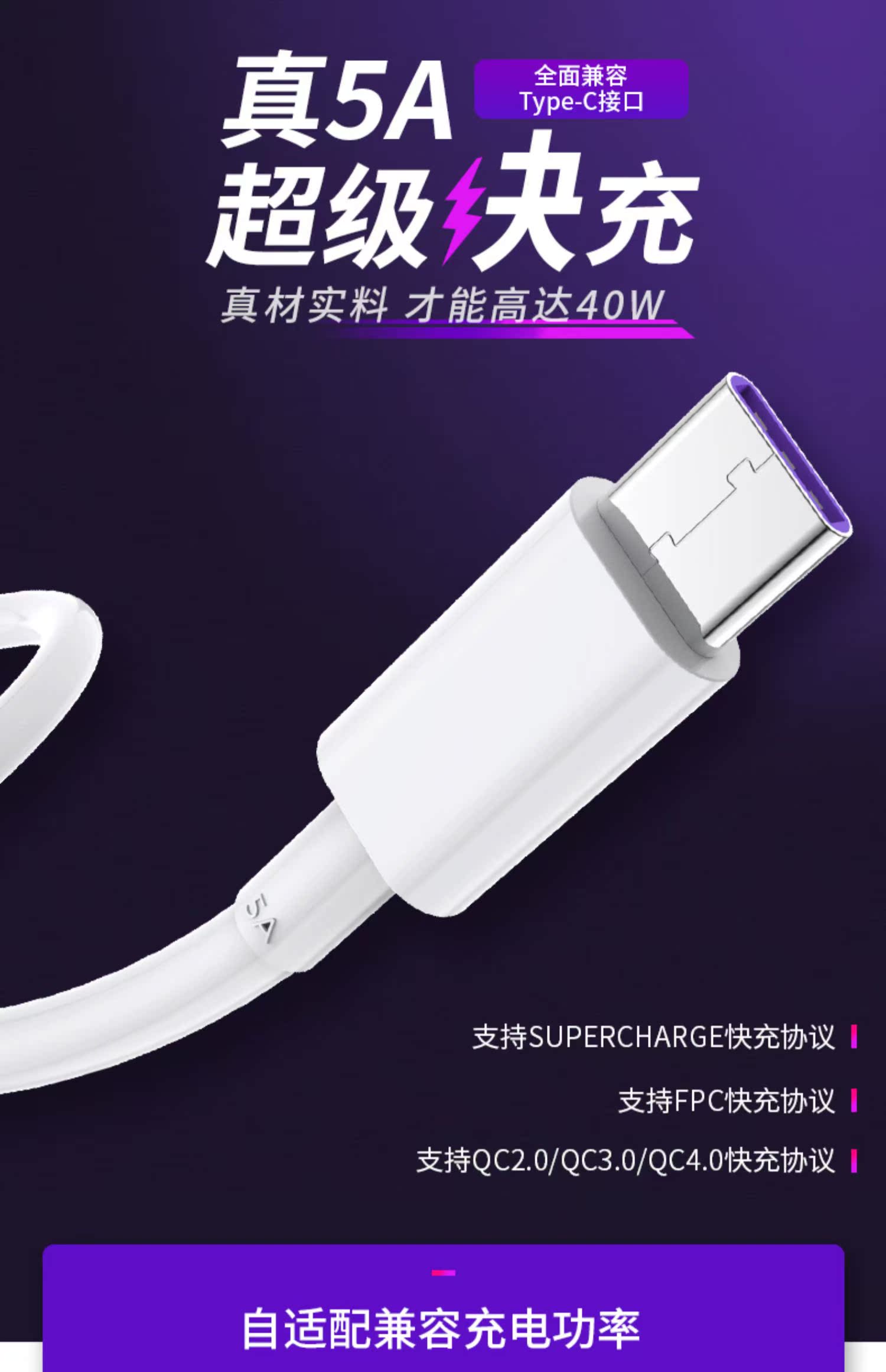 【全兼容type-c接口】真正的5A级快充数据线!!数据传输+充电二合一!!方便又快捷,早点充满电早点出门!!
