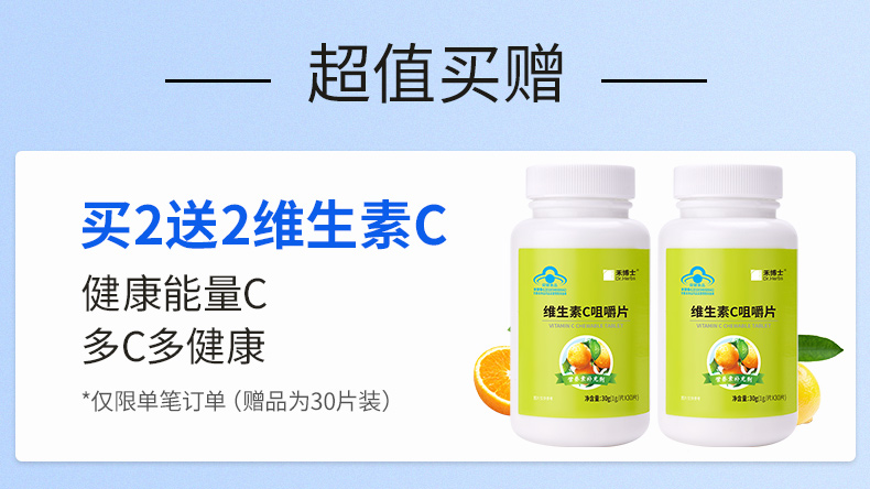 【买2送2】维生素C咀嚼片【全国包邮】【赠运费险】线下卖98!咱活动100片仅24!蓝帽认证的,禾博士B族维生素片!加班熬夜,消化不良,吃上一粒,有效排毒养颜,增强抵抗力!每天都是元气满满!